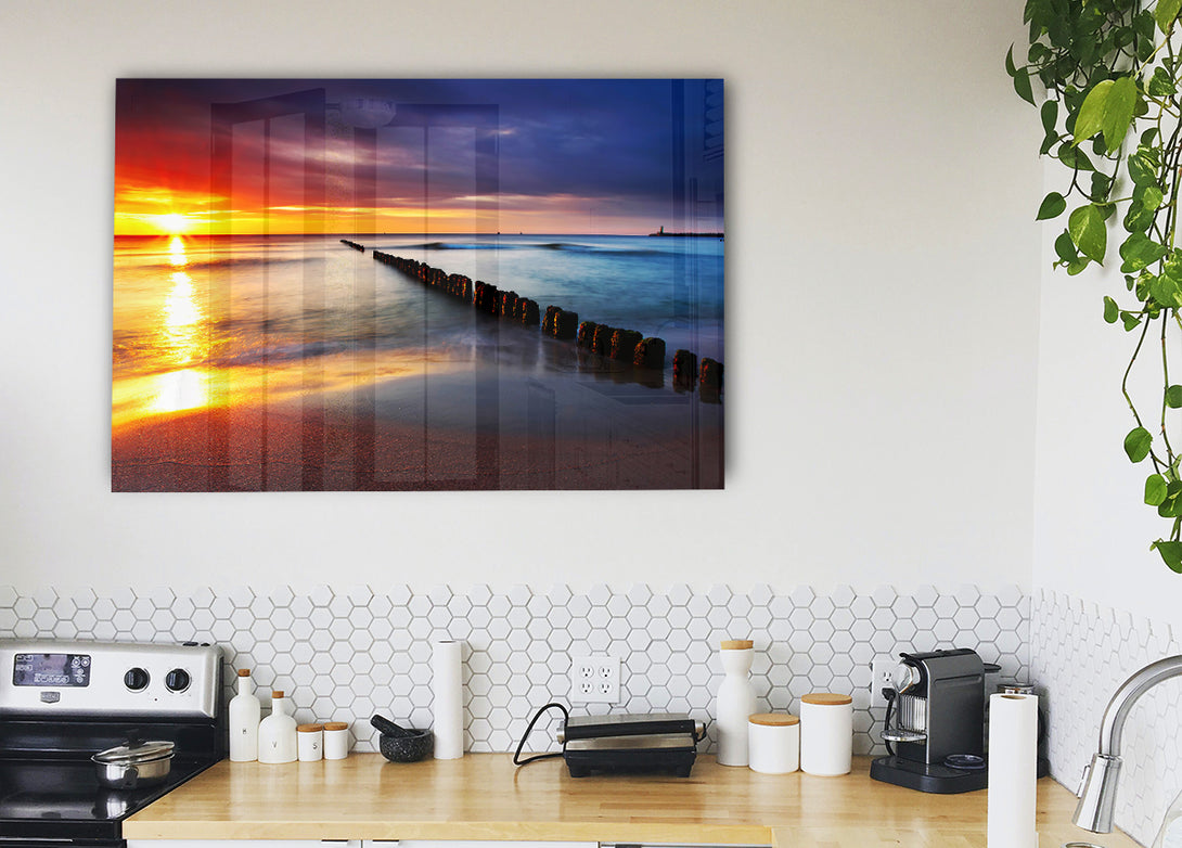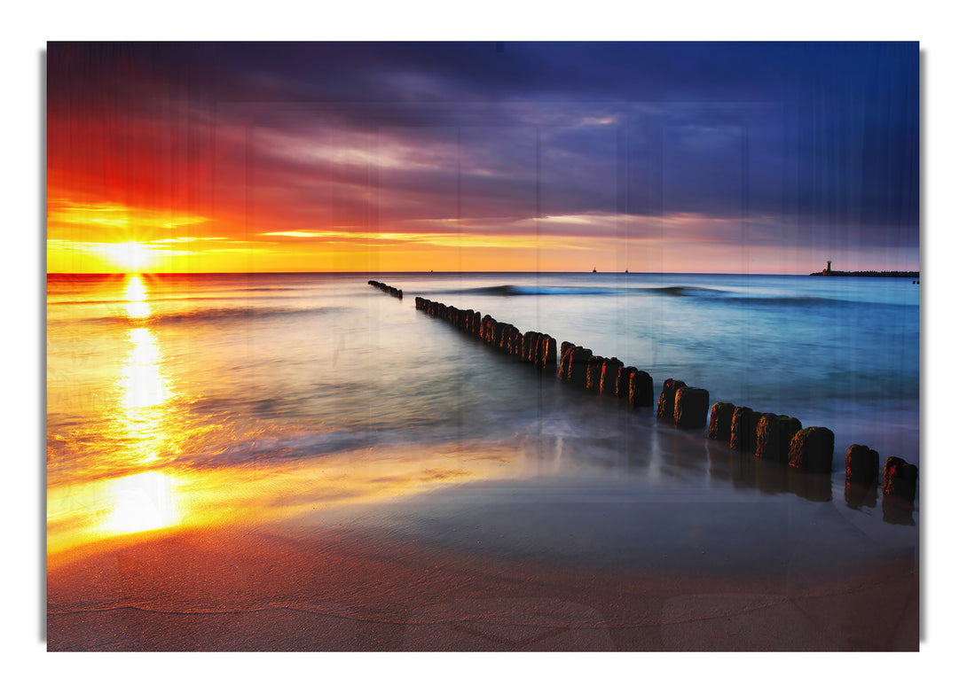 Acryldruck „Sun Through The Ocean Waves“, UV-gedruckt auf 5 mm dickes Acrylglas. Wird mit allem geliefert, was Sie zum Aufhängen an die Wand benötigen.