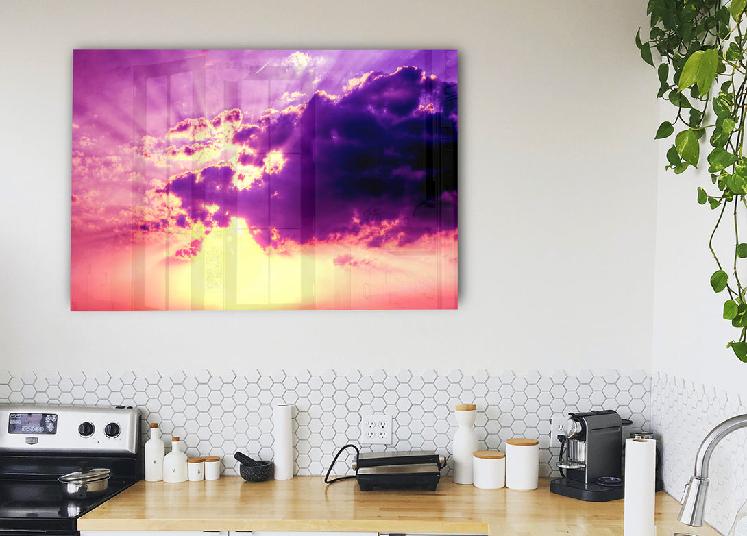 Sunburst-Acryldruck, UV-gedruckt auf 5 mm dickes Acrylglas. Wird mit allem geliefert, was Sie zum Aufhängen an Ihrer Wand benötigen.