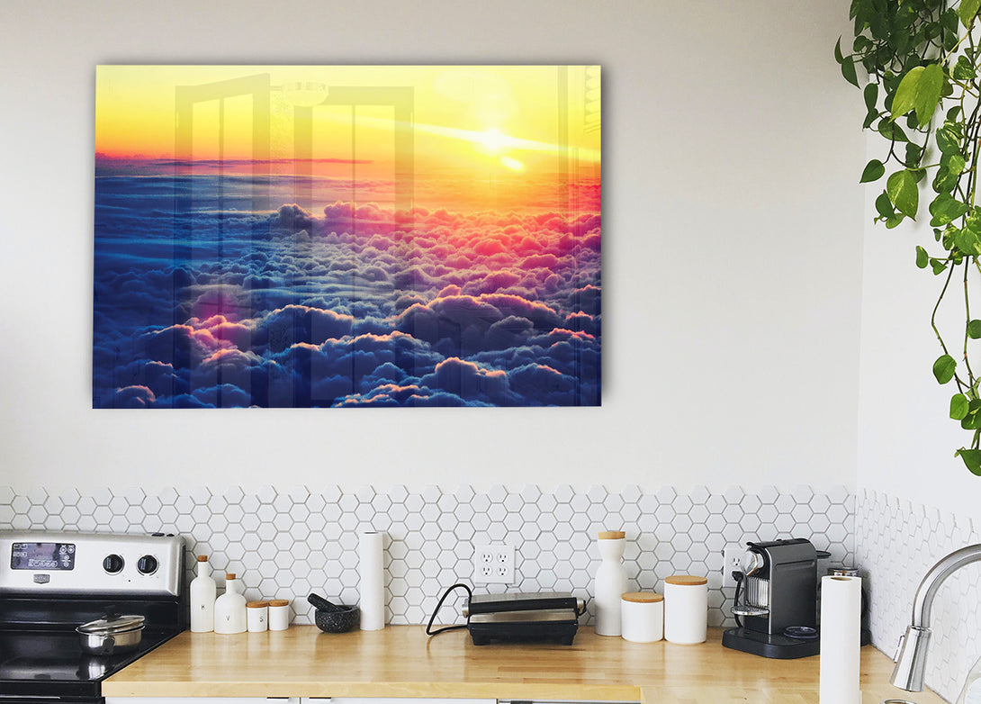 Acryldruck „Sunrise Above The Clouds“, UV-Druck auf 5 mm dickes Acrylglas. Wird mit allem geliefert, was Sie zum Aufhängen an die Wand benötigen.