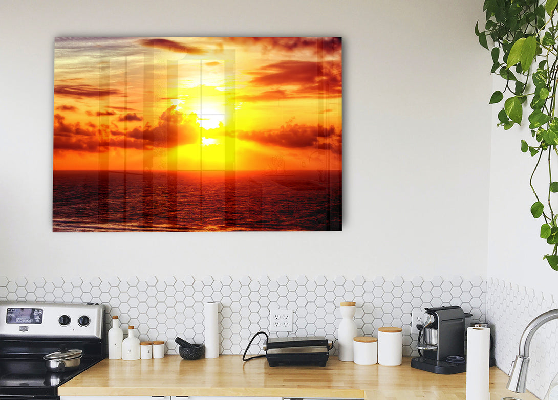 Acryldruck „Sunrise Across The Sea“, UV-gedruckt auf 5 mm dickes Acrylglas. Wird mit allem geliefert, was Sie zum Aufhängen an die Wand brauchen.