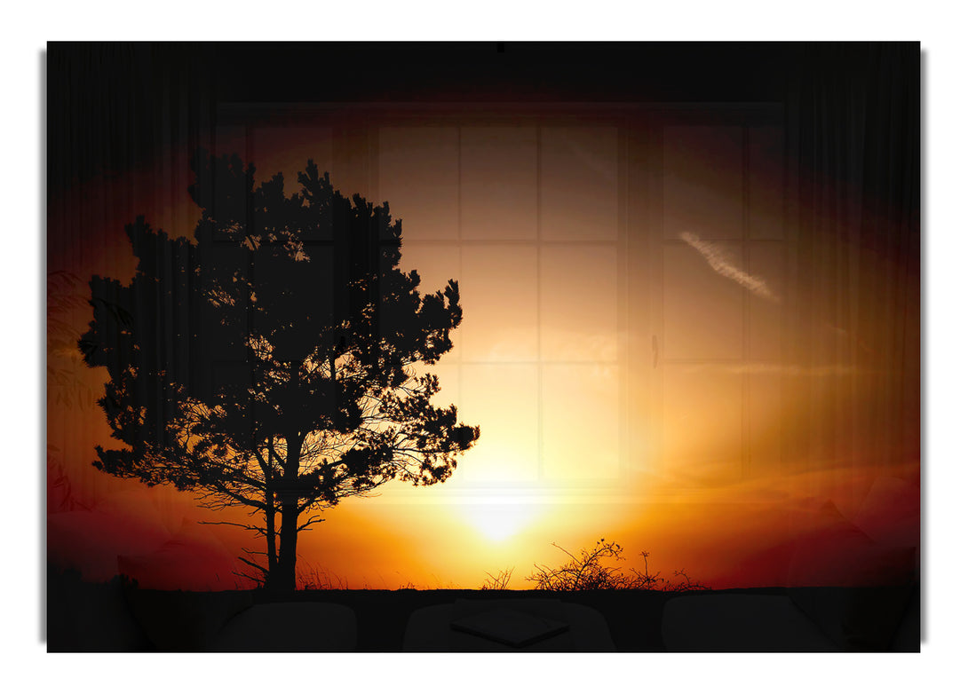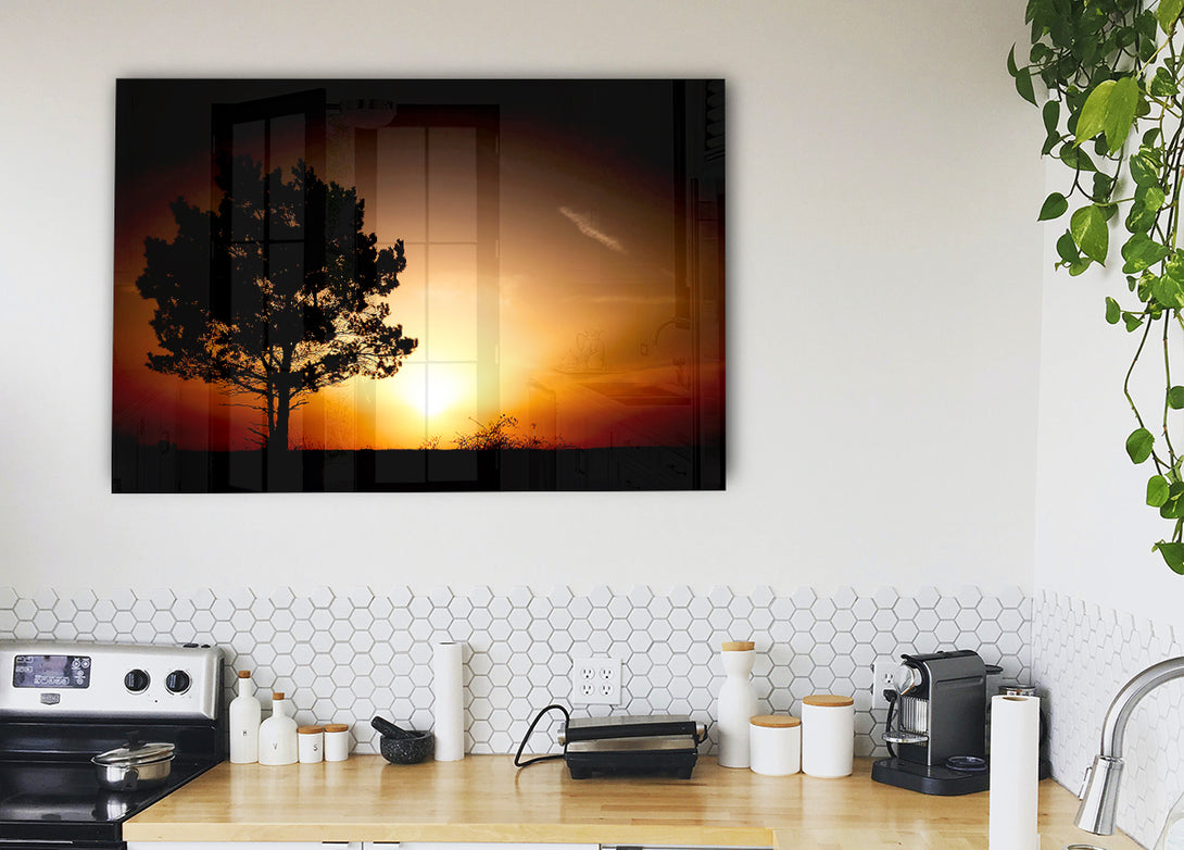 Acryldruck „Sunrise Tree“, UV-gedruckt auf 5 mm dickes Acrylglas. Wird mit allem geliefert, was Sie zum Aufhängen an die Wand brauchen.