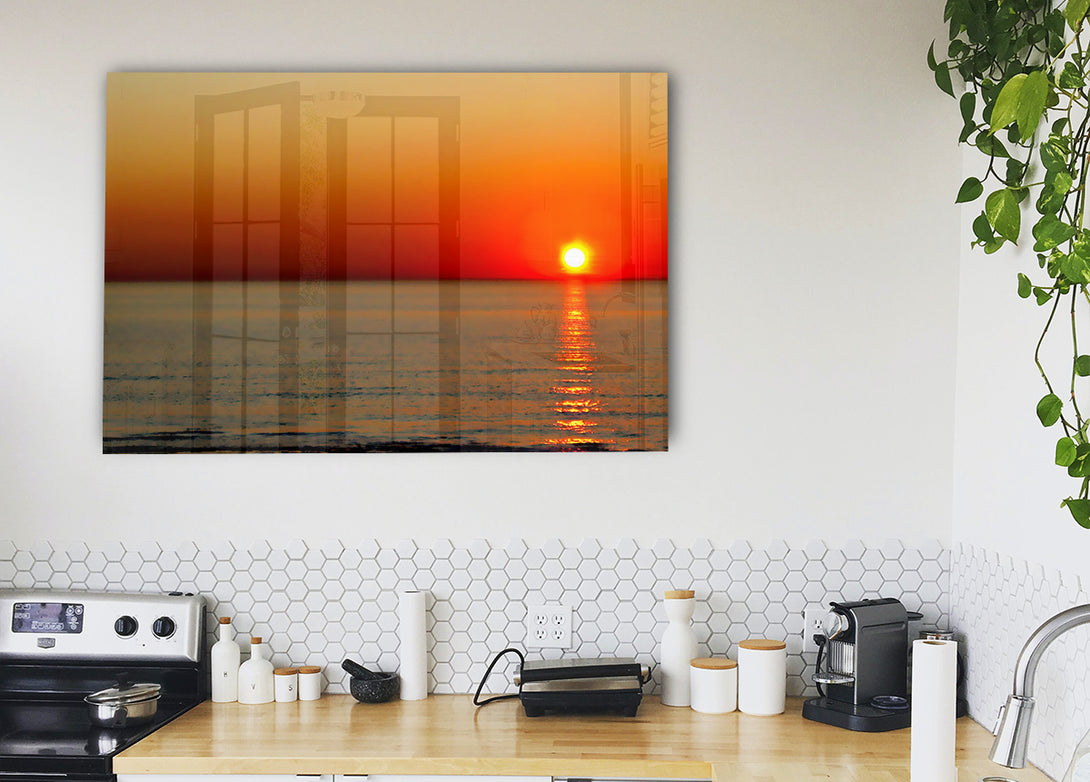 Acryldruck „Sunset 26“, UV-Druck auf 5 mm dickes Acrylglas. Wird mit allem geliefert, was Sie zum Aufhängen an die Wand benötigen.