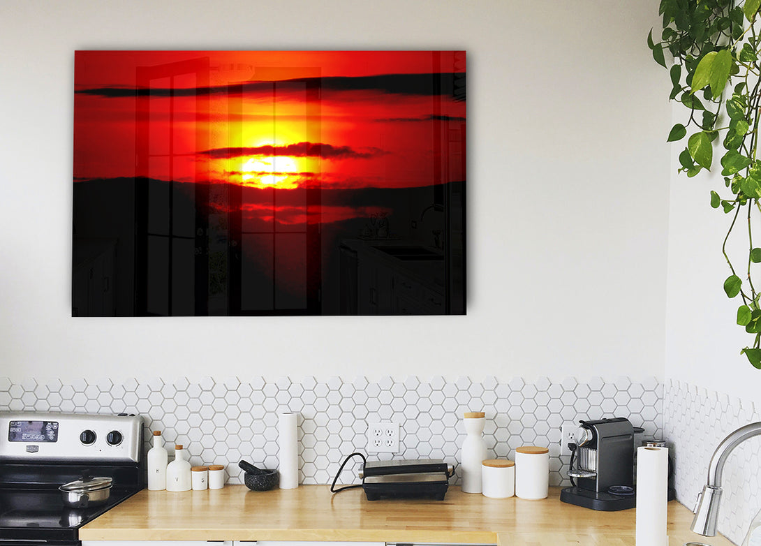 Acryldruck „Sunset 66“, UV-Druck auf 5 mm dickes Acrylglas. Wird mit allem geliefert, was Sie zum Aufhängen an die Wand benötigen.