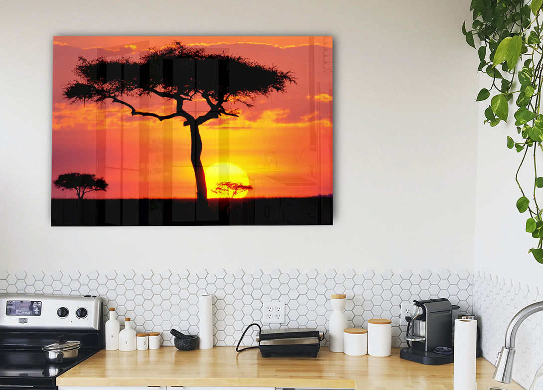 Acryldruck „Sonnenuntergang in Kenia“, UV-gedruckt auf 5 mm dickes Acrylglas. Wird mit allem geliefert, was Sie zum Aufhängen an Ihre Wand benötigen.