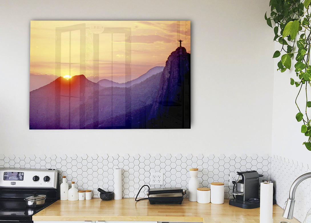 Acryldruck „Sonnenuntergang über Brasilien“, UV-Druck auf 5 mm dickes Acrylglas. Wird mit allem geliefert, was Sie zum Aufhängen an die Wand benötigen.