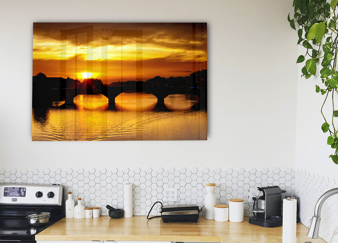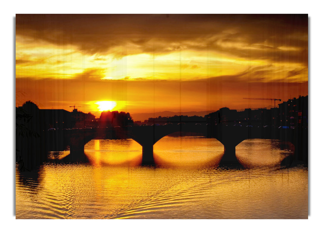 Acryldruck „Sonnenuntergang über dem Florence River“, UV-Druck auf 5 mm dickes Acrylglas. Wird mit allem geliefert, was Sie zum Aufhängen an die Wand brauchen.