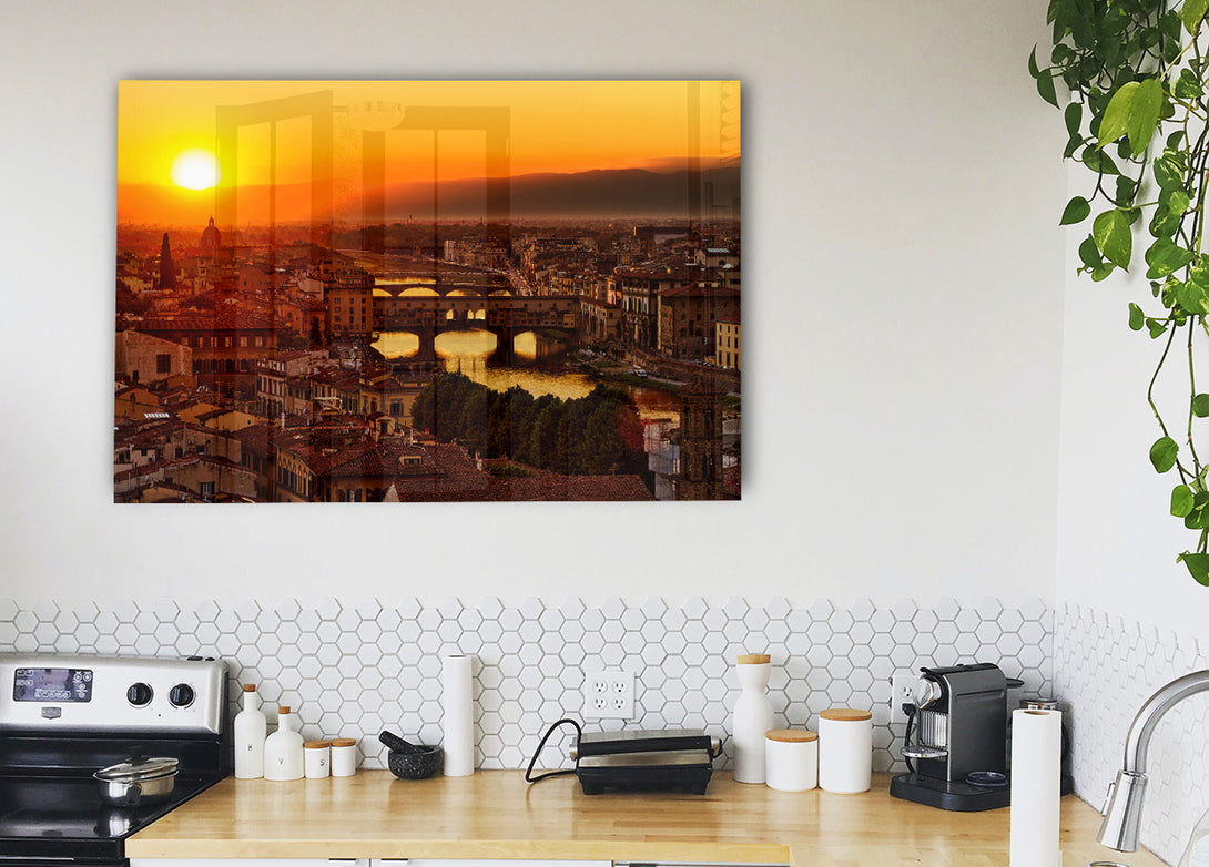 Acryldruck „Sunset Over The Ancient“, UV-gedruckt auf 5 mm dickes Acrylglas. Wird mit allem geliefert, was Sie zum Aufhängen an die Wand brauchen.