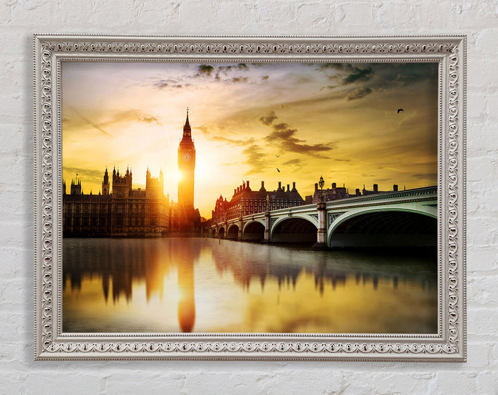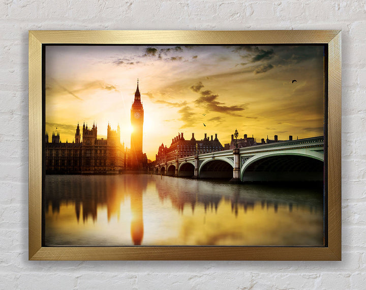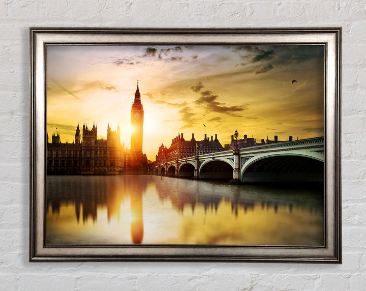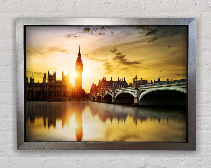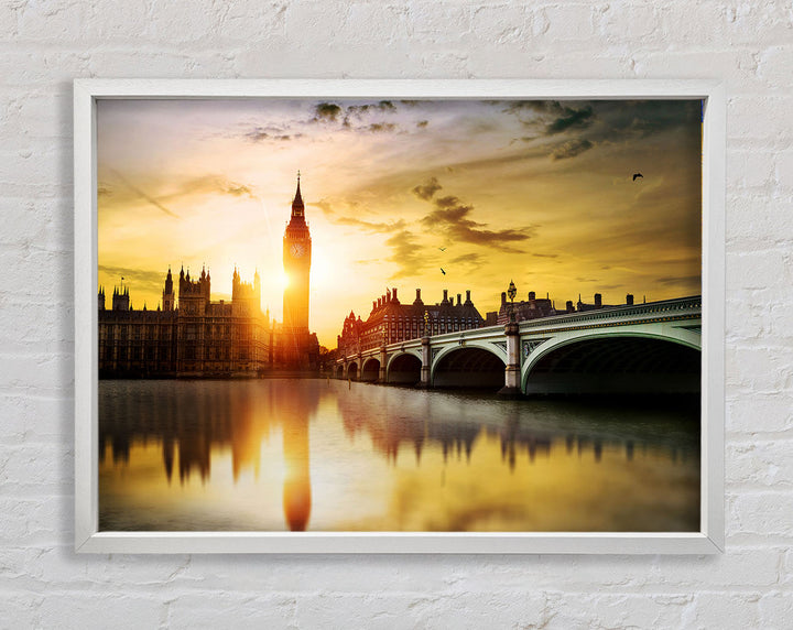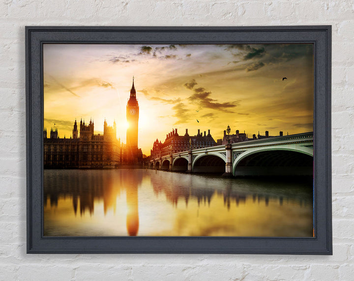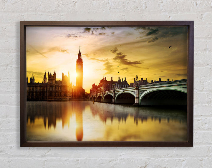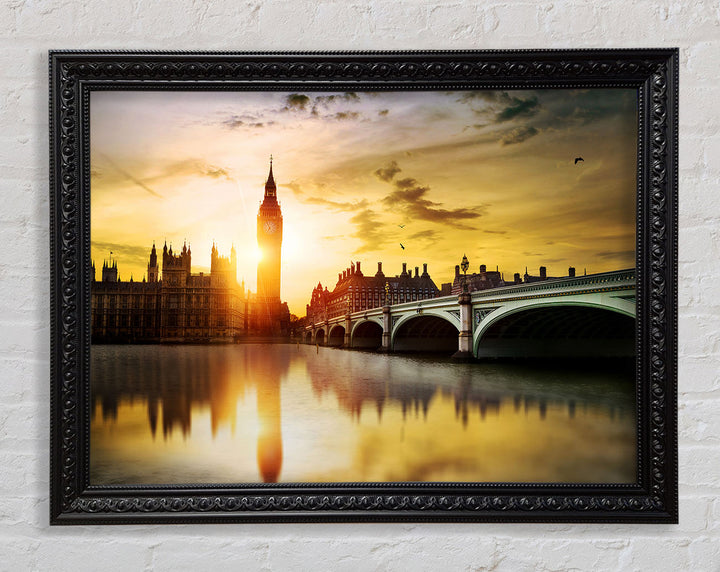 Gerahmter Druck „Sunset Through Big Ben“, erhältlich in mehreren Rahmenfarben. Fertig zum Aufhängen aus der Schachtel und handgefertigt im Vereinigten Königreich.