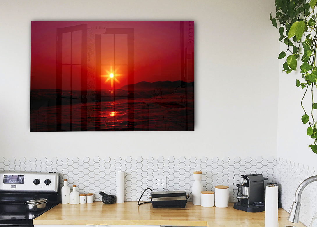 Sunstar Red-Acryldruck, UV-gedruckt auf 5 mm dickes Acrylglas. Wird mit allem geliefert, was Sie zum Aufhängen an Ihre Wand benötigen.