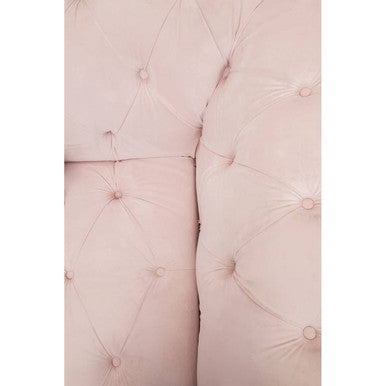 The Suri sofa is filled with foam for a firm feel and is upholstered in blossom velvet fabric which gives it a soft, pastel shade. Its rolled arms are accentuated by the metallic studs. The seat, inner arms and backrest have a button tufted finish for a highly textued look. Its intricately carved legs are made from solid larch wood, with the front pair featuring caster wheels.