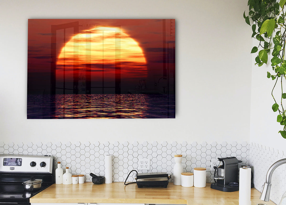 Surrealer Ocean Sun-Acryldruck, UV-gedruckt auf 5 mm dickes Acrylglas. Wird mit allem geliefert, was Sie zum Aufhängen an Ihre Wand benötigen.