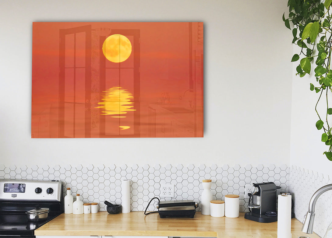Acryldruck „Surreal Sun Reflections“, UV-gedruckt auf 5 mm dickes Acrylglas. Wird mit allem geliefert, was Sie zum Aufhängen an Ihre Wand benötigen.