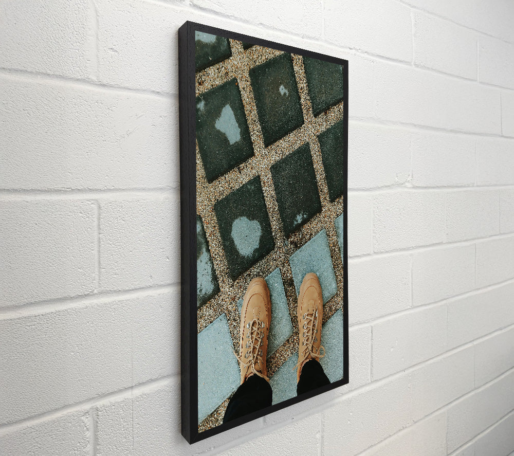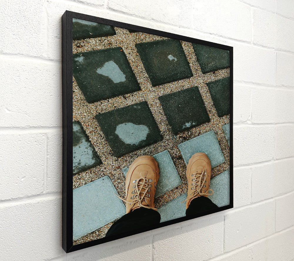Tan Shoes On Grey Tiles