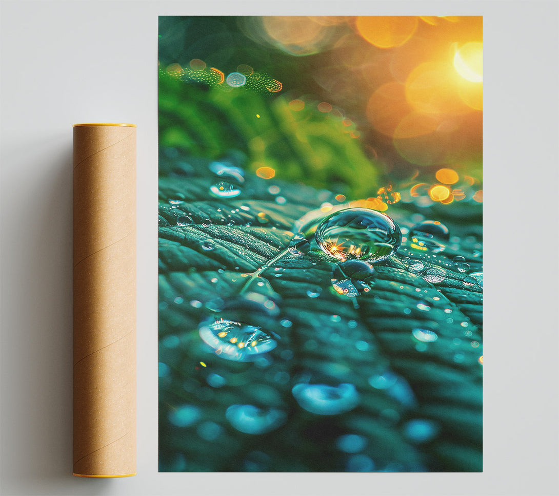 Our Teal Dewdrop Reflections Poster is printed 260 GSM premium lustre paper that offers vibrant colours and exceptional detail.