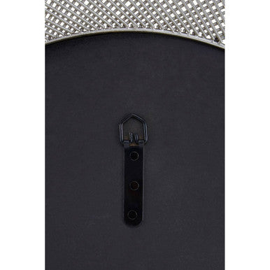 This wall mirror impresses with its refined and elegant frame. Made from aluminium, small nickel finish iron lines intersect each other to form a minimal criss cross pattern. Surrounding the centre mirror, the silver frame furthers the decorative flair with filigree metal struts present at each pointed end of the sleek wires.