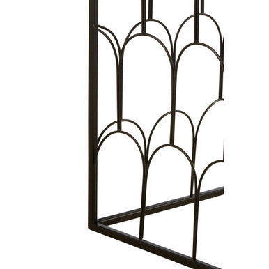 The two Templar side tables nest comfortably together when not in use. Both tables feature robust iron frames that sport a smooth black finish. An understated, square marble slab neatly sits atop the decorative bases.