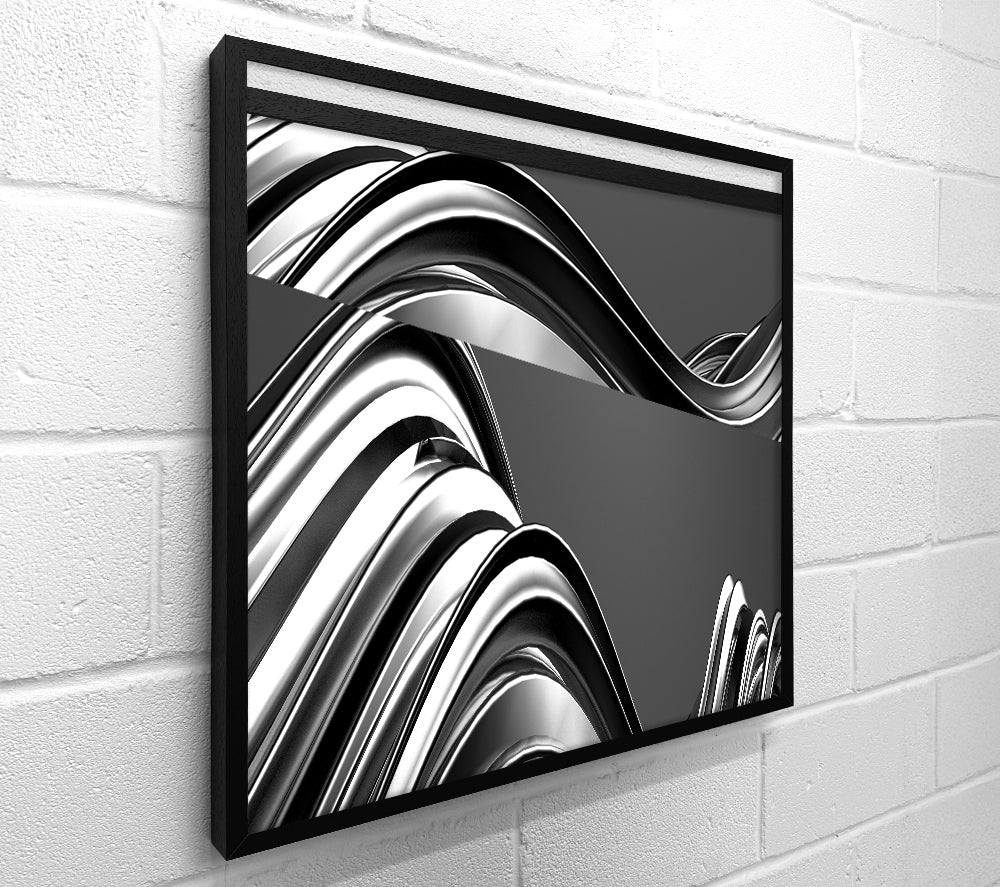 Quadratische Leinwand „Flow Of Grey“, gedruckt auf beschichteter Polyester-Leinwand. Auf einem 44 mm großen Kastenrahmen montiert, fertig zum Aufhängen.
