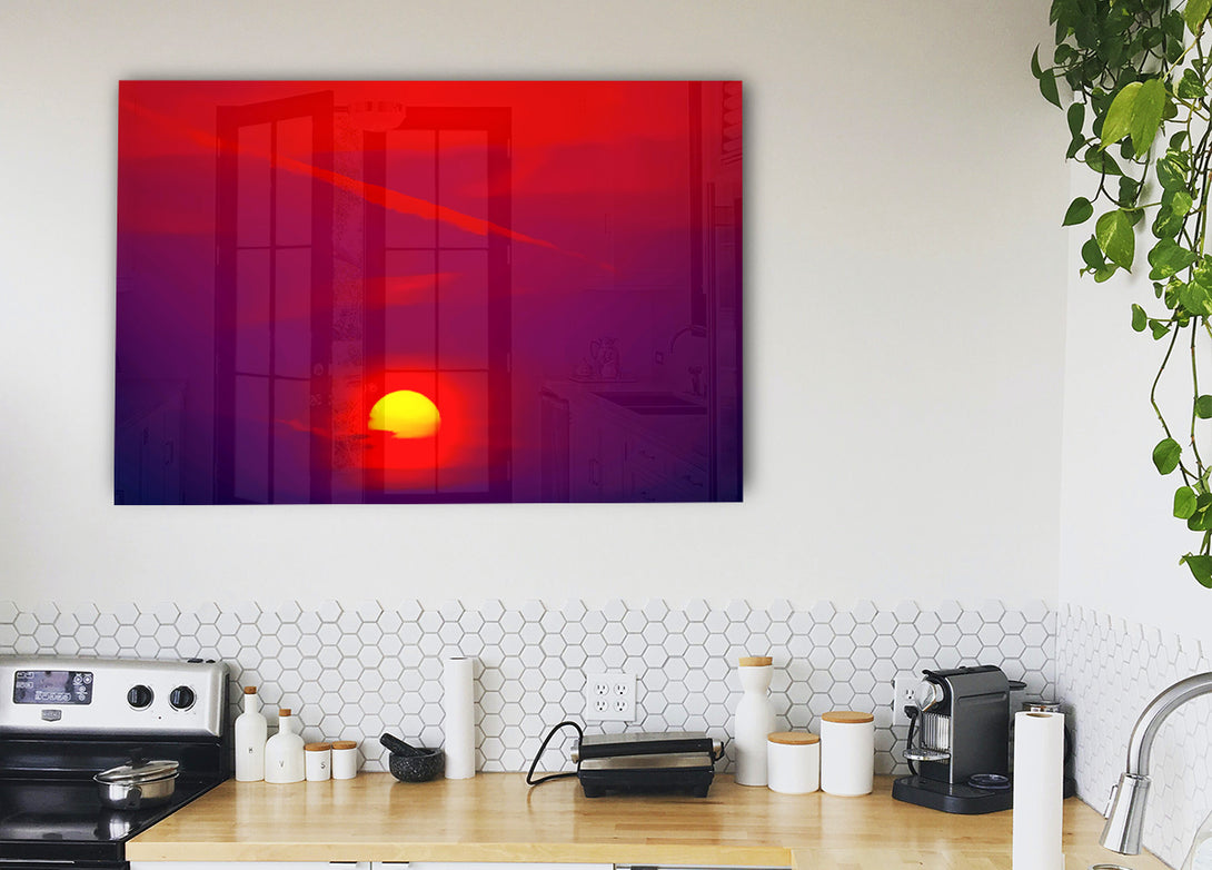 Acryldruck „The Glow Of The Red Sun“, UV-gedruckt auf 5 mm dickes Acrylglas. Wird mit allem geliefert, was Sie zum Aufhängen an die Wand brauchen.