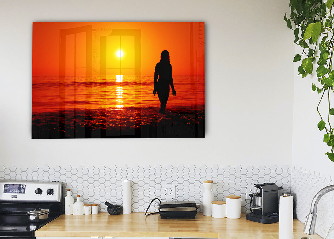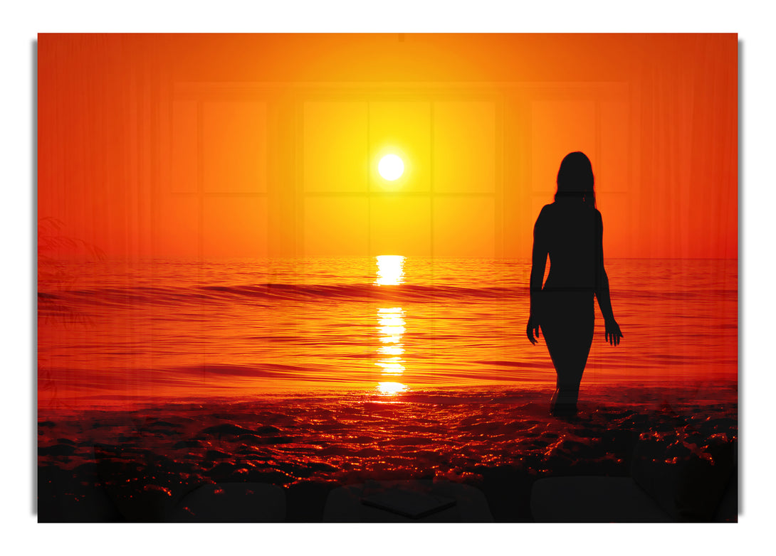 Acryldruck „Die Göttin der orangefarbenen Ozeansonne“, UV-Druck auf 5 mm dickes Acrylglas. Wird mit allem geliefert, was Sie zum Aufhängen an Ihre Wand benötigen.