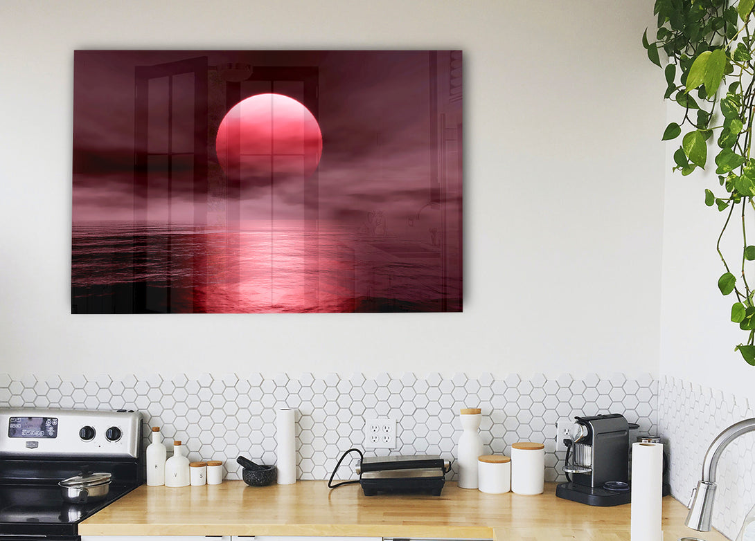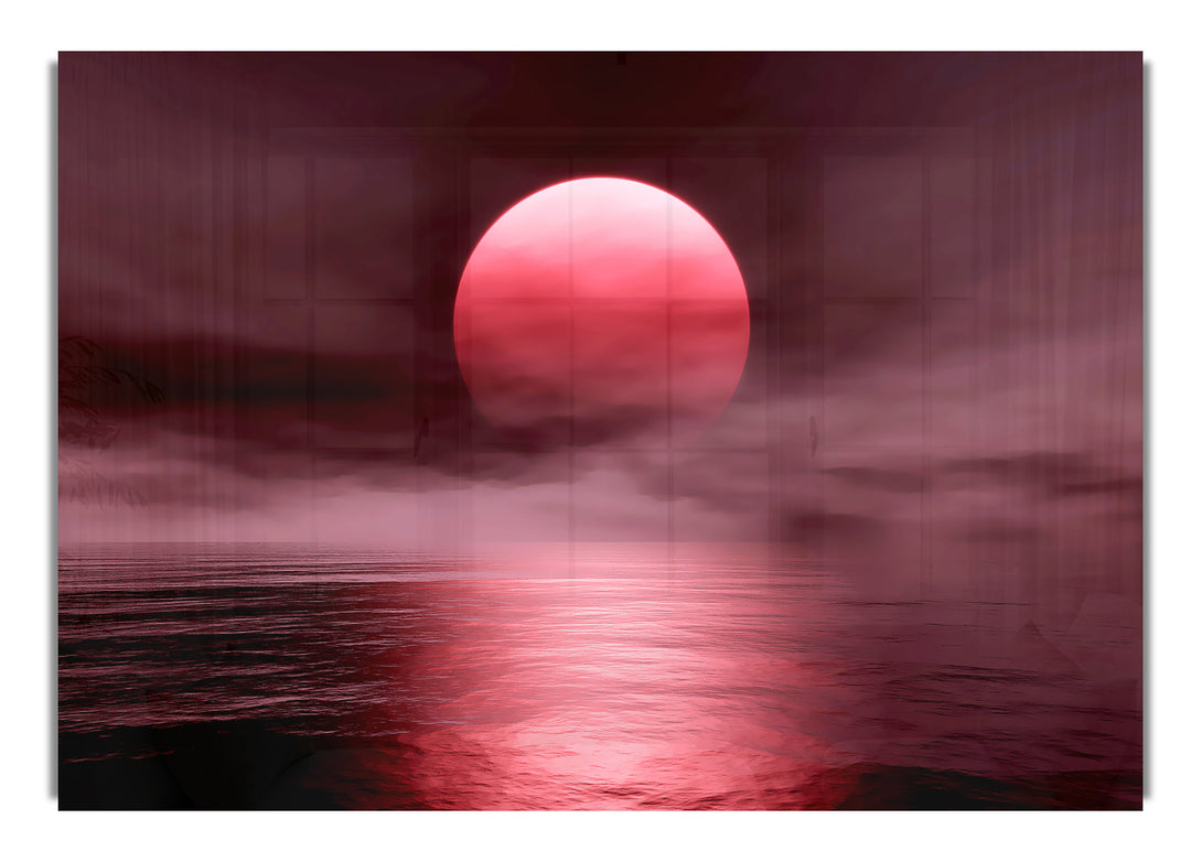 Acryldruck „Die riesige rote Sonne über dem grauen Ozean“, UV-gedruckt auf 5 mm dickes Acrylglas. Wird mit allem geliefert, was Sie zum Aufhängen an Ihre Wand benötigen.