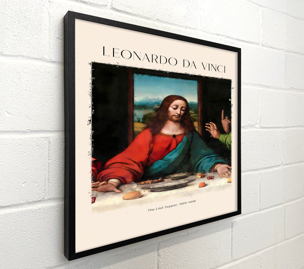 Das letzte Abendmahl, 1495-1498 von Leonardo Da Vinci. Quadratische Leinwand, gedruckt auf beschichteter Polyester-Leinwand. Auf einem 44 mm breiten Rahmen montiert, fertig zum Aufhängen.