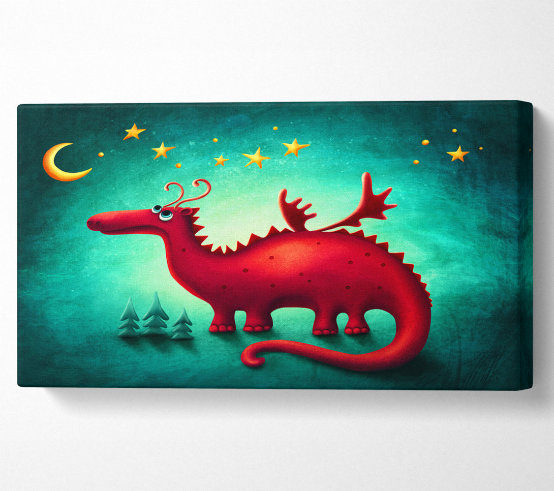 Breite Leinwand „Der rote Drache unter dem Mond“, gedruckt auf beschichteter Polyester-Leinwand. Auf einem 44 mm breiten Kastenrahmen montiert, fertig zum Aufhängen.