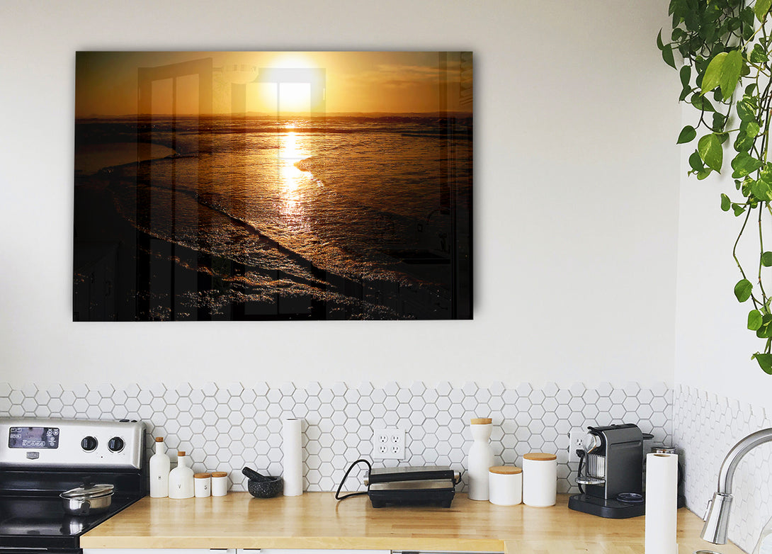 Acryldruck „The Reflections Of The Ocean Sun“, UV-gedruckt auf 5 mm dickes Acrylglas. Wird mit allem geliefert, was Sie zum Aufhängen an die Wand benötigen.