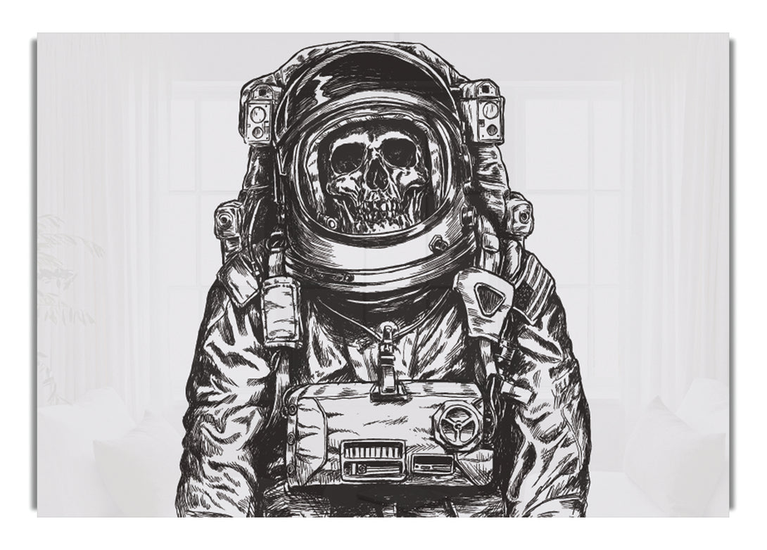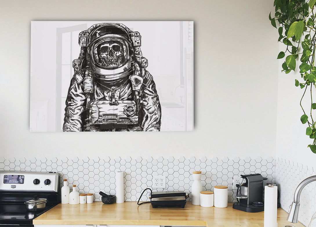 Der Skeleton Space Explorer-Acryldruck, UV-gedruckt auf 5 mm dickes Acrylglas. Wird mit allem geliefert, was Sie zum Aufhängen an Ihre Wand benötigen.