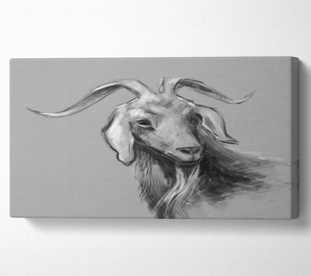 Die breite Leinwand „Sketch Goat“, gedruckt auf beschichteter Polyester-Leinwand. Auf einem 44 mm breiten Kastenrahmen montiert, fertig zum Aufhängen.