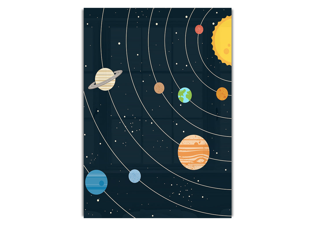Acryldruck „Sonnensystem 2“, UV-gedruckt auf 5 mm dickes Acrylglas. Wird mit allem geliefert, was Sie zum Aufhängen an die Wand brauchen.