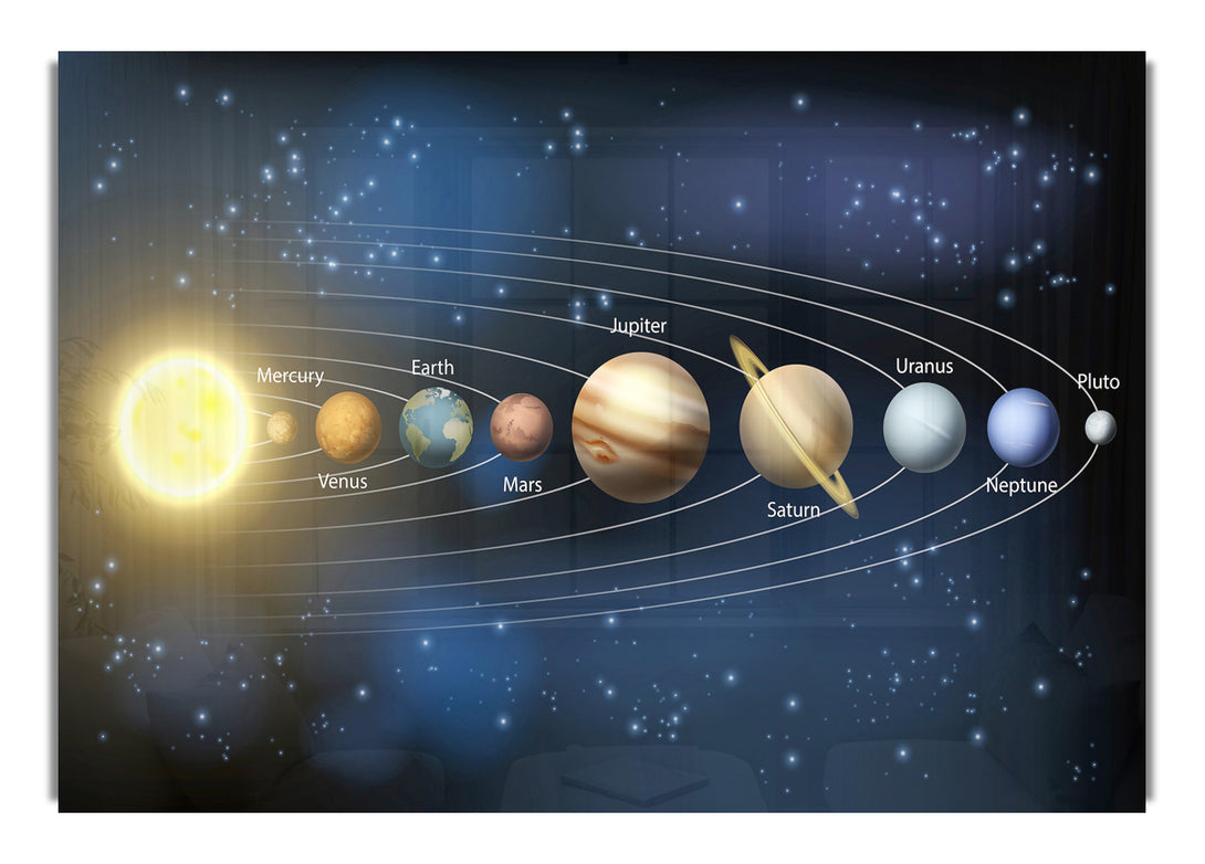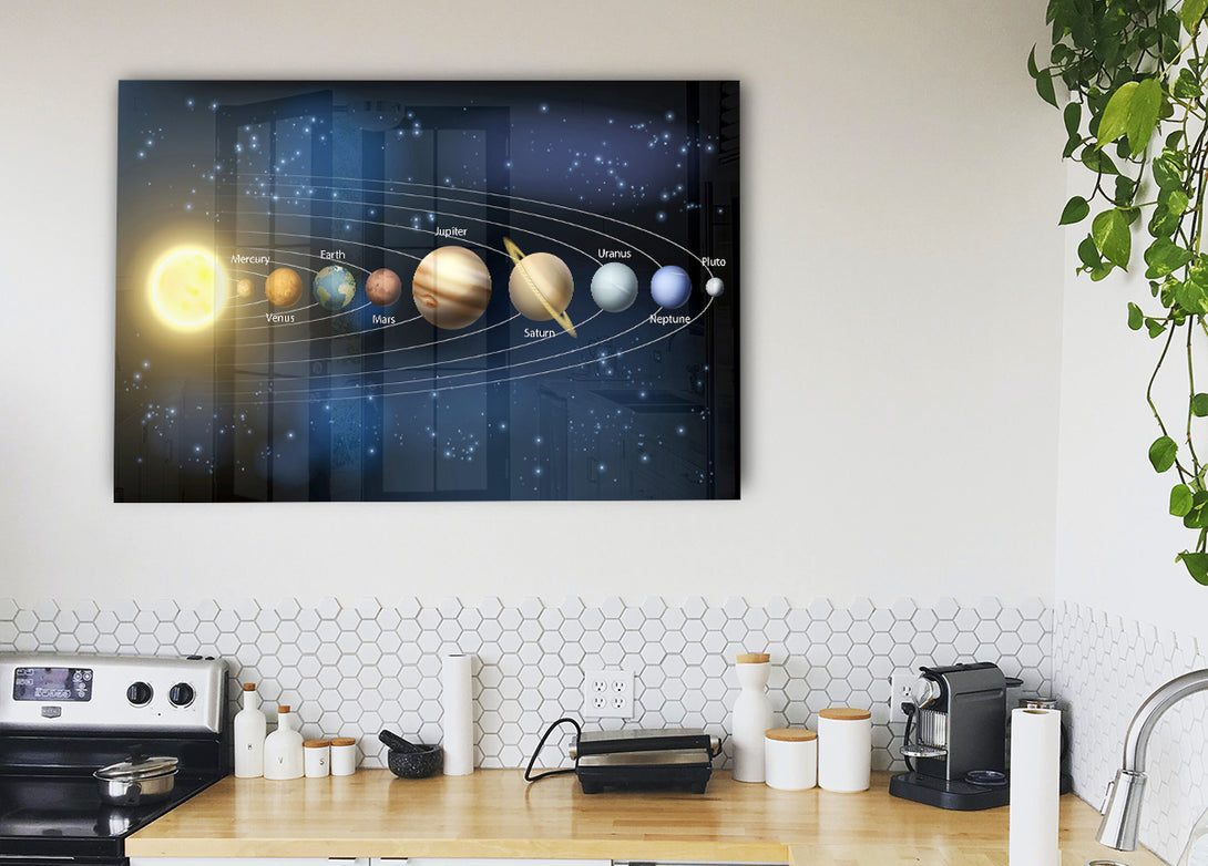 Acryldruck „Sonnensystem 4“, UV-gedruckt auf 5 mm dickes Acrylglas. Wird mit allem geliefert, was Sie zum Aufhängen an die Wand brauchen.