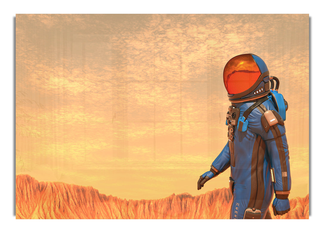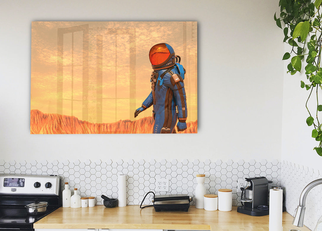 Acryldruck „Space Man In Mars“, UV-gedruckt auf 5 mm dickes Acrylglas. Wird mit allem geliefert, was Sie zum Aufhängen an die Wand brauchen.