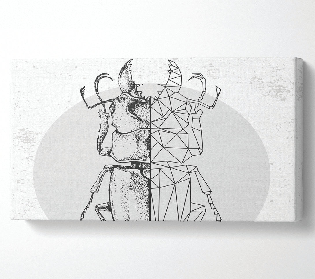Die Hirschkäfer-Skizze auf breiter Leinwand, gedruckt auf beschichteter Polyester-Leinwand. Auf einem 44 mm breiten Kastenrahmen montiert, fertig zum Aufhängen.