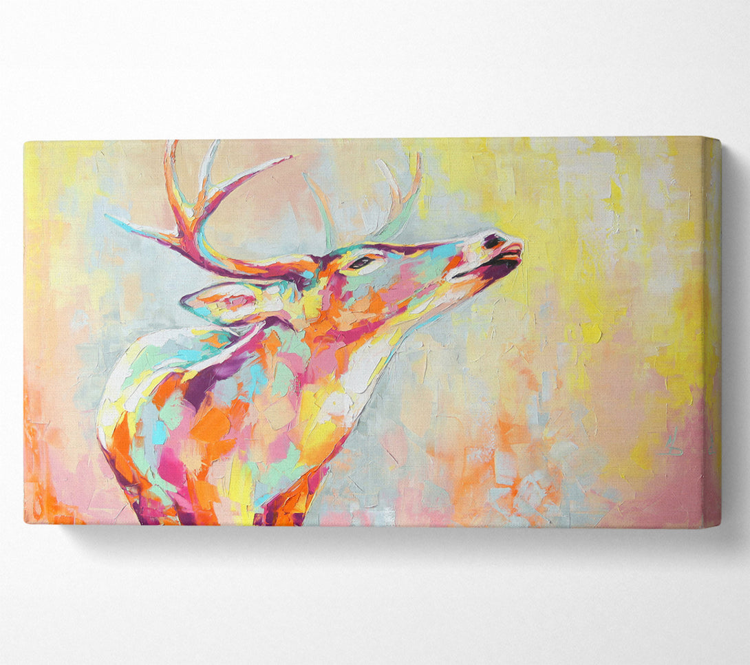 Breite Leinwand „The Stag Looking Ahead“, gedruckt auf beschichteter Polyester-Leinwand. Auf einem 44 mm breiten Kastenrahmen montiert, fertig zum Aufhängen.