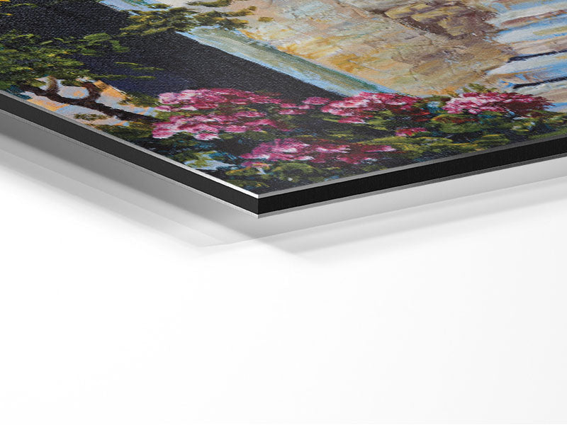 Die Straßen von Paphos. Gedruckt auf gebürstetem Aluminium-Dibond. Eine moderne und pflegeleichte Art, Kunst zu präsentieren.