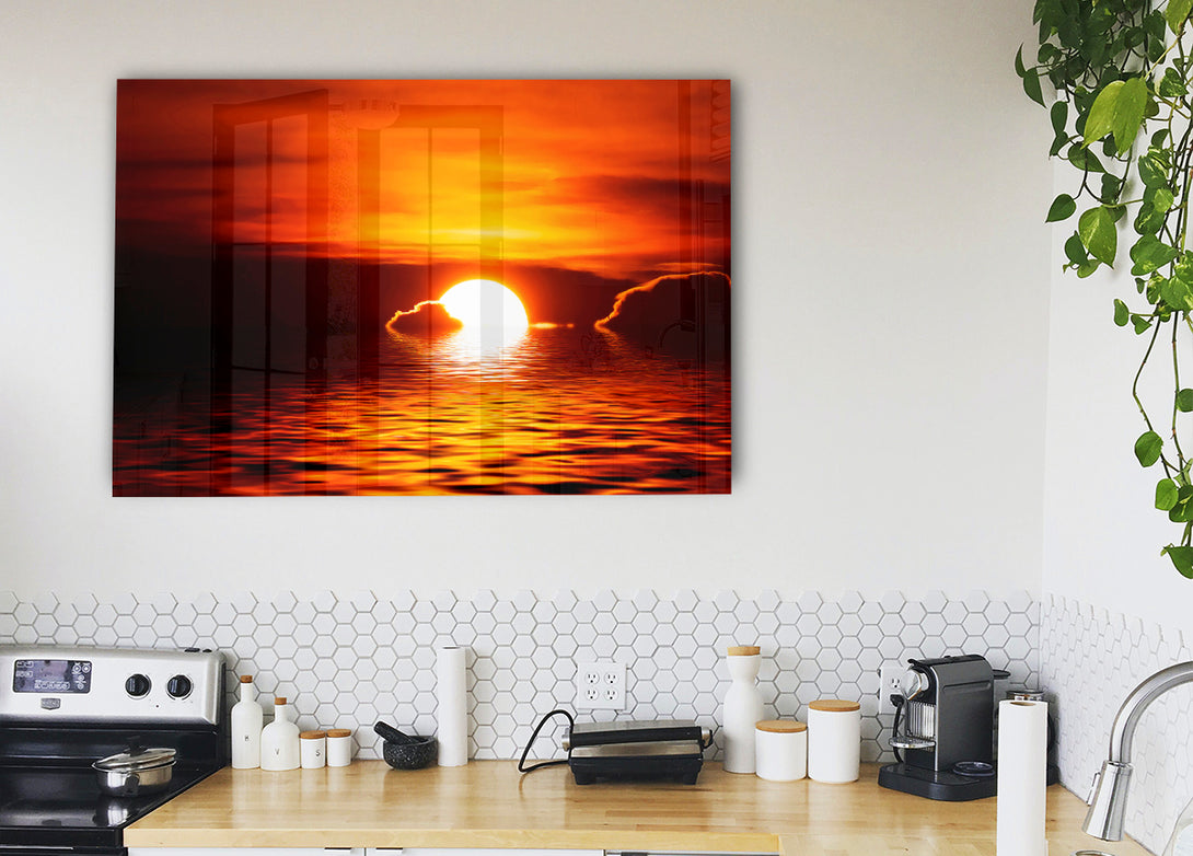 Acryldruck „The Sun Falls In The Ocean“, UV-gedruckt auf 5 mm dickes Acrylglas. Wird mit allem geliefert, was Sie zum Aufhängen an Ihre Wand benötigen.