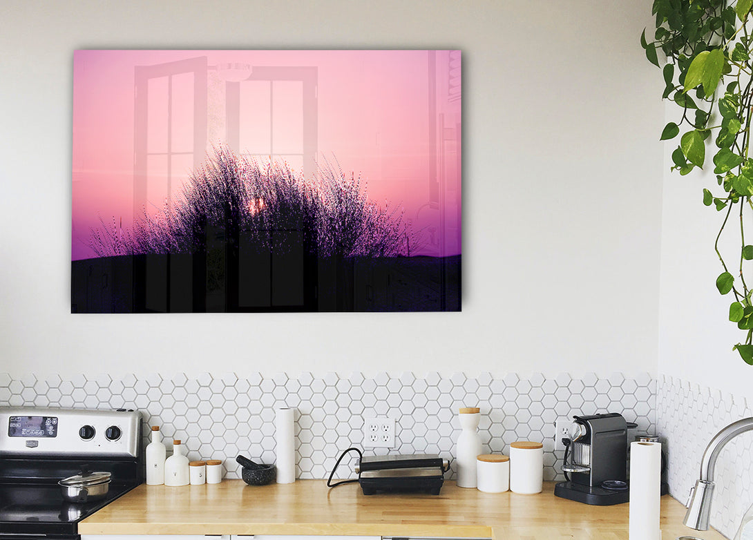 Der Acryldruck „The Sun Reeds Pink“, UV-gedruckt auf 5 mm dickes Acrylglas. Wird mit allem geliefert, was Sie zum Aufhängen an Ihre Wand benötigen.