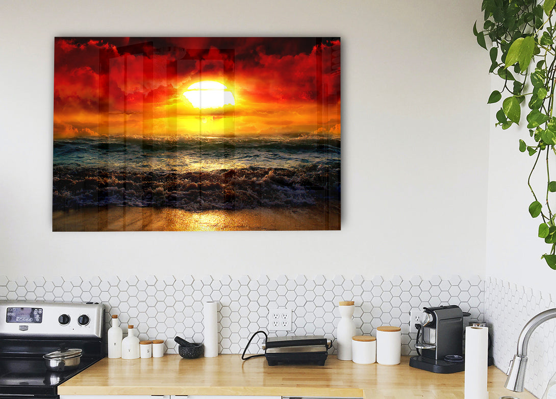 Der Sunrise-Acryldruck, UV-gedruckt auf 5 mm dickes Acrylglas. Wird mit allem geliefert, was Sie zum Aufhängen an Ihrer Wand benötigen.