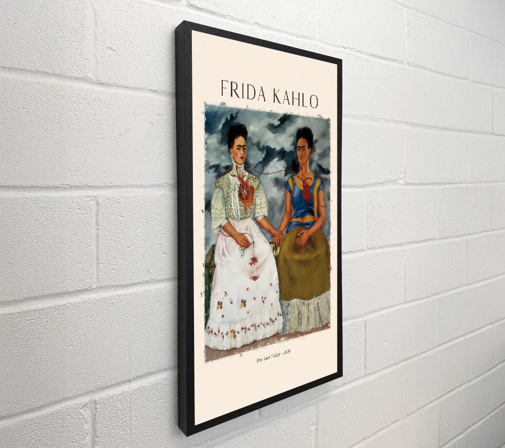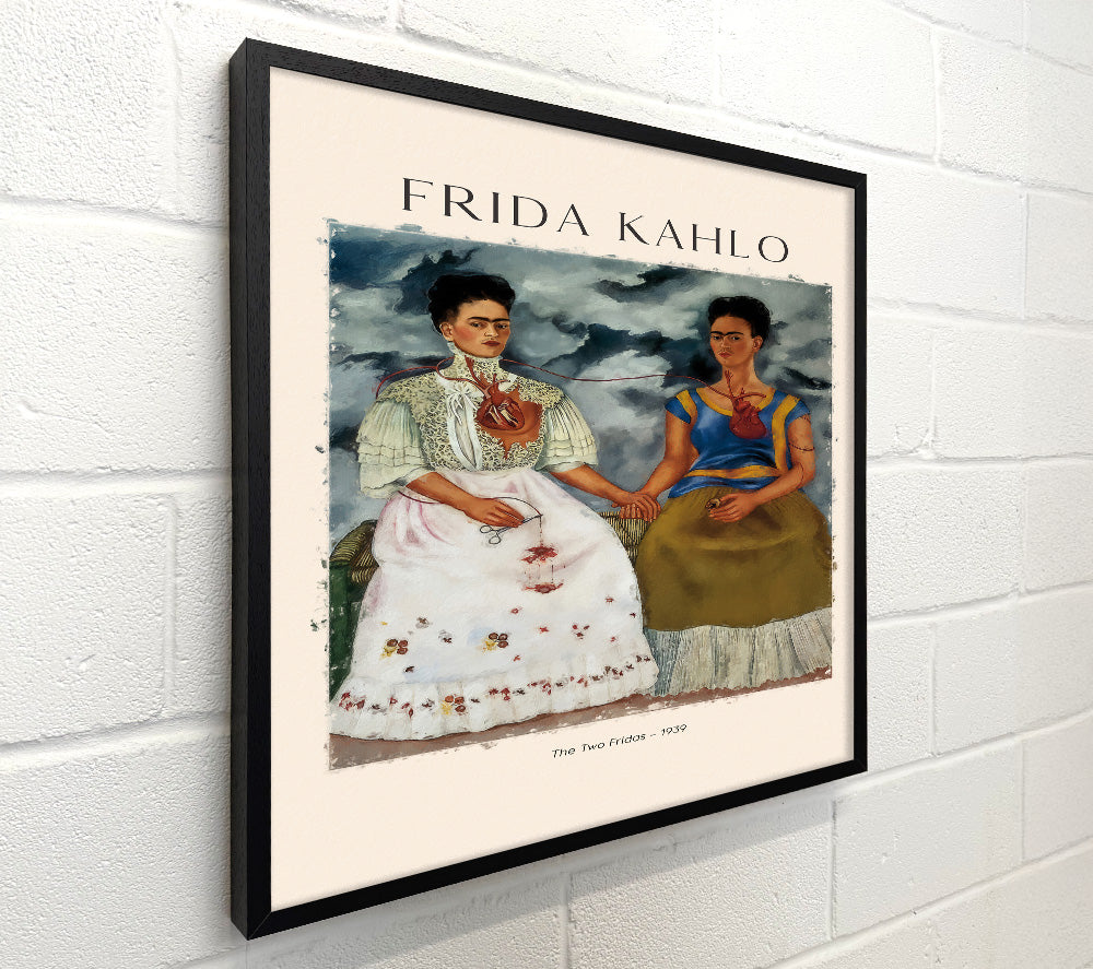 Die zwei Fridas – 1939 von Frida Kahlo. Quadratische Leinwand, gedruckt auf beschichteter Polyester-Leinwand. Auf einem 44 mm großen Rahmen montiert, fertig zum Aufhängen.