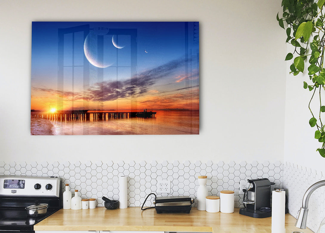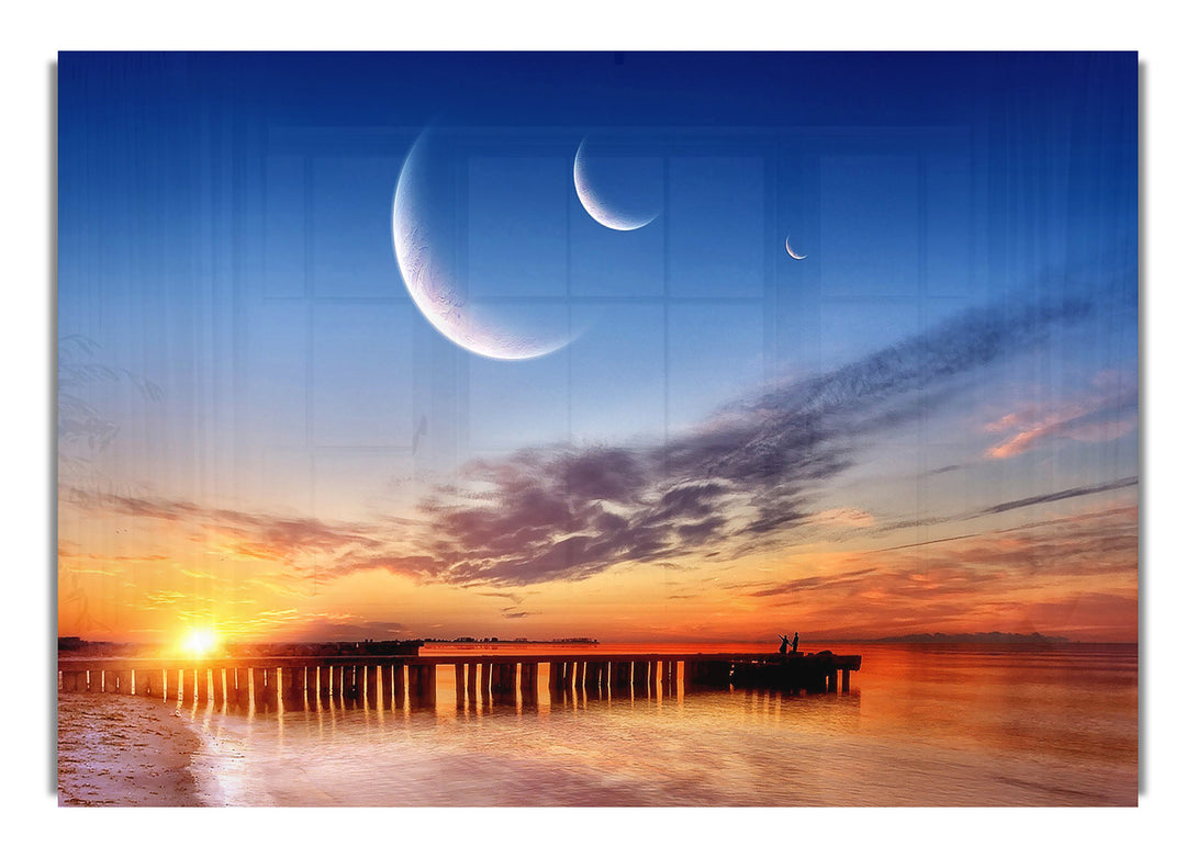 Acryldruck „Three Moons“, UV-gedruckt auf 5 mm dickes Acrylglas. Wird mit allem geliefert, was Sie zum Aufhängen an die Wand brauchen.