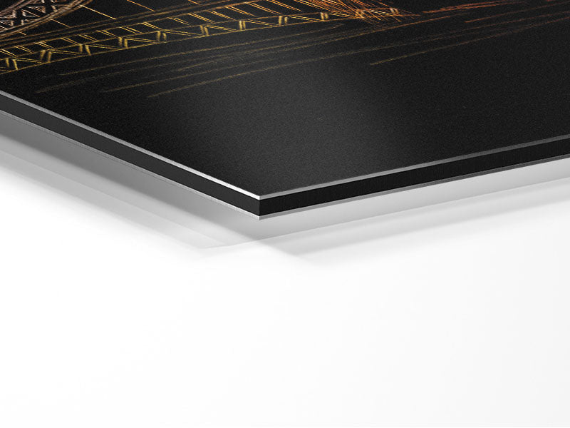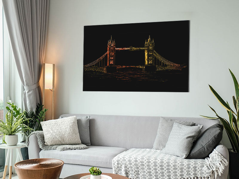Tower Bridge Glow Gedruckt auf gebürstetem Aluminium-Dibond. Eine moderne Art, Kunst zu präsentieren und leicht zu pflegen.