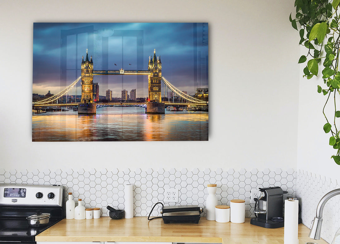 Acryldruck „Tower Bridge Night Glow“, UV-gedruckt auf 5 mm dickes Acrylglas. Wird mit allem geliefert, was Sie zum Aufhängen an die Wand brauchen.