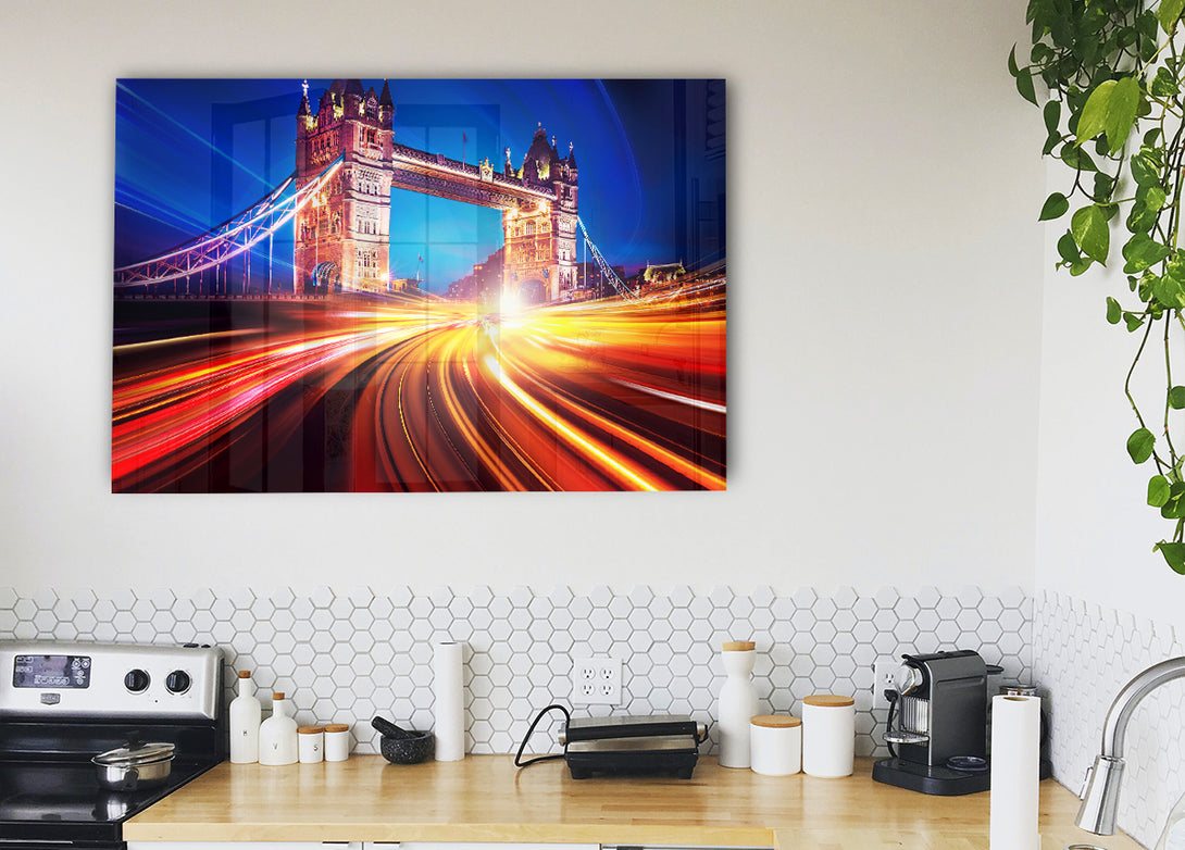 Tower Bridge Speed Of Light 2-Acryldruck, UV-gedruckt auf 5 mm dickes Acrylglas. Wird mit allem geliefert, was Sie zum Aufhängen an Ihre Wand benötigen.