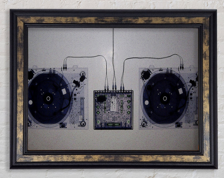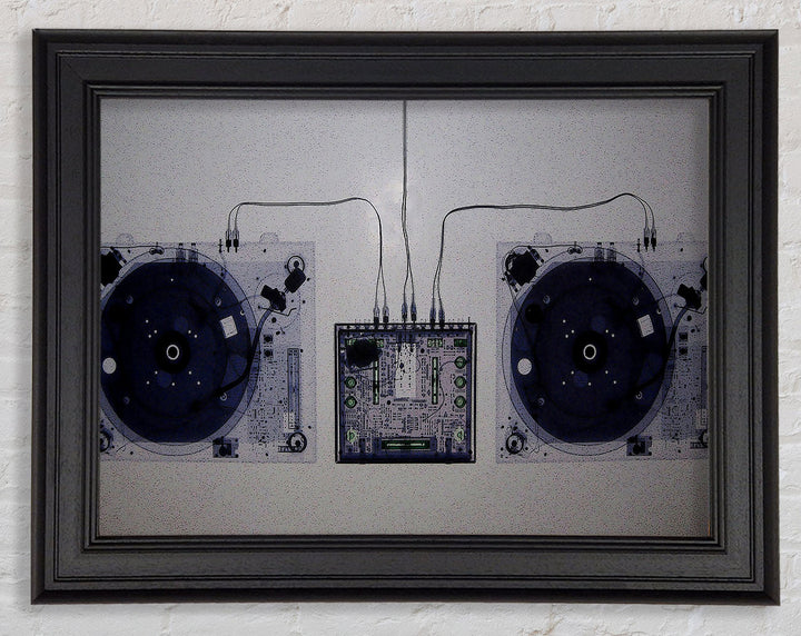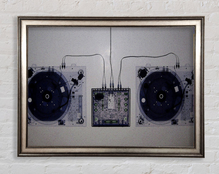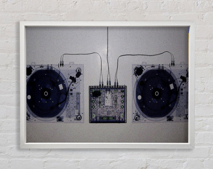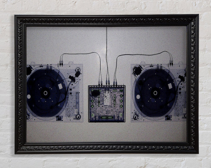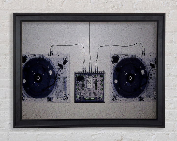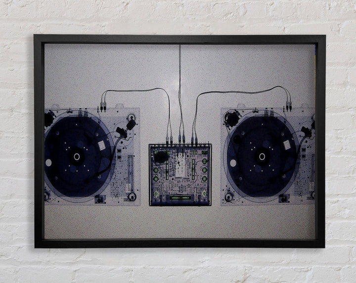 Durchscheinender gerahmter Druck „DJ Console Mixer“, erhältlich in mehreren Rahmenfarben. Fertig zum Aufhängen aus der Schachtel und handgefertigt im Vereinigten Königreich.