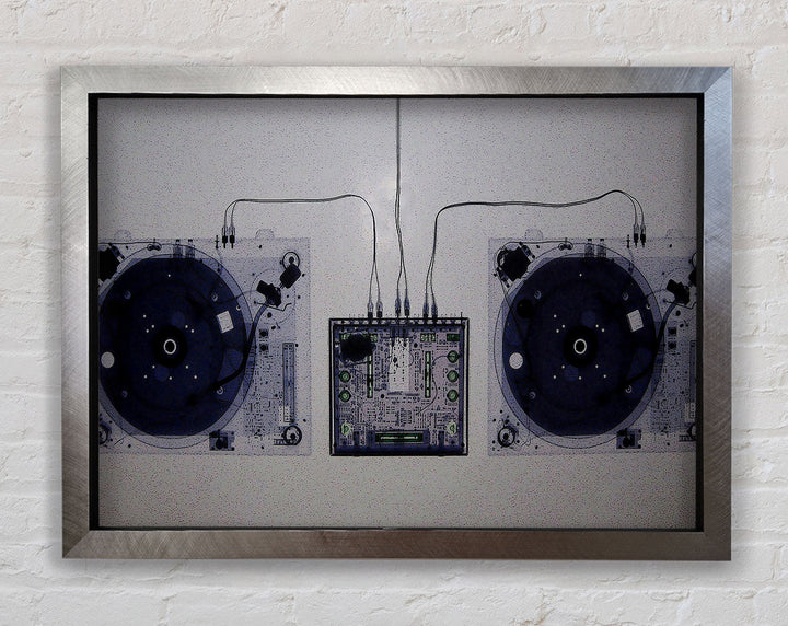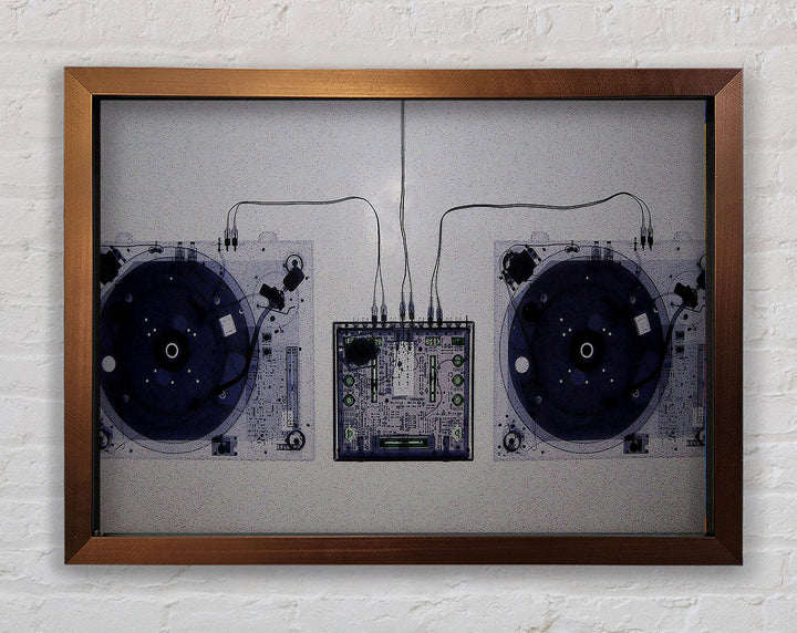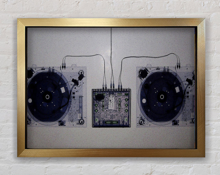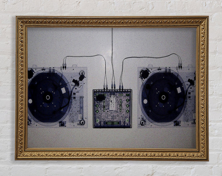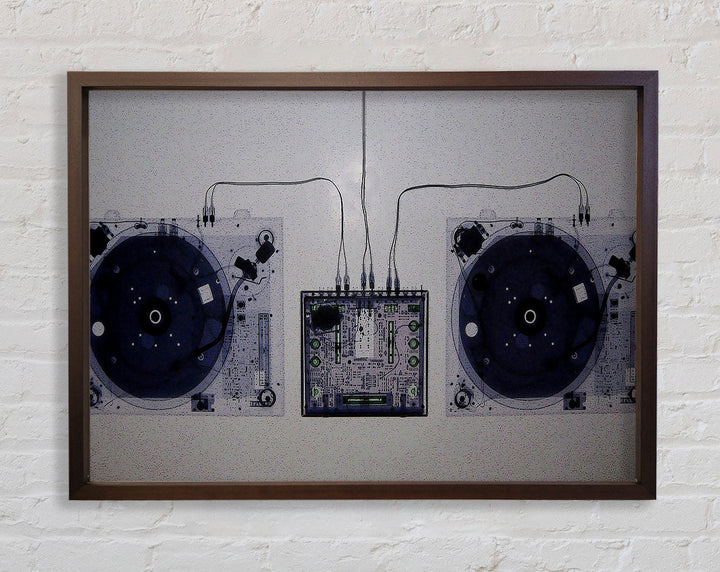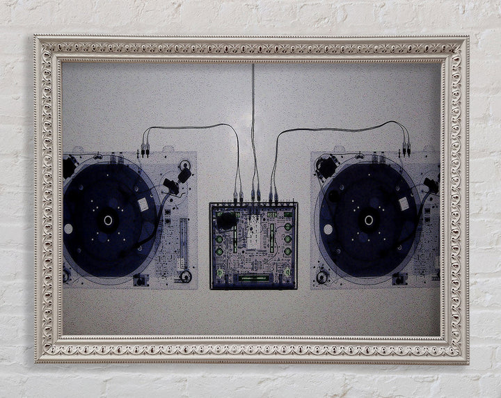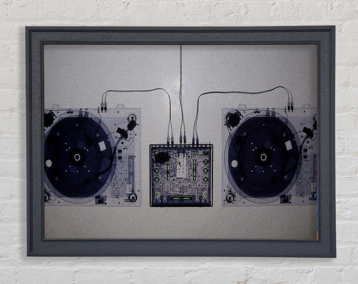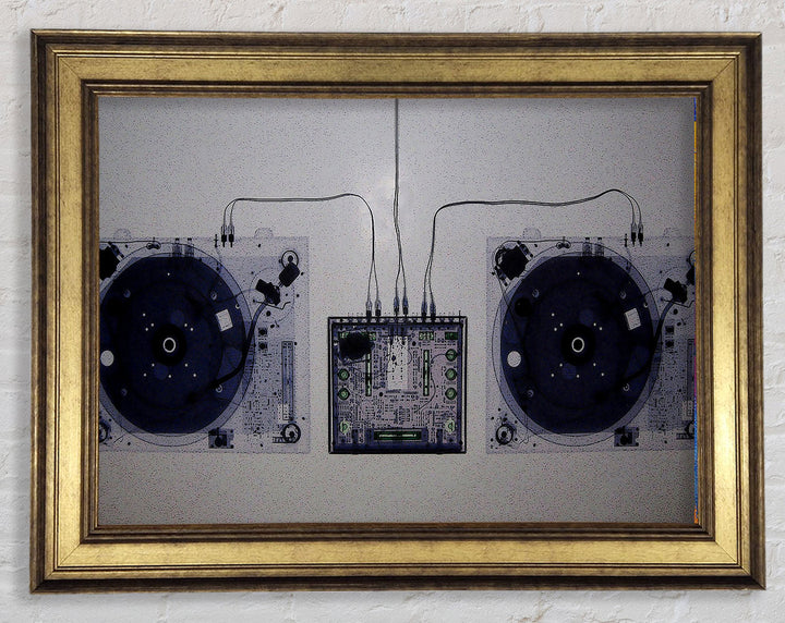 Durchscheinender gerahmter Druck „DJ Console Mixer“, erhältlich in mehreren Rahmenfarben. Fertig zum Aufhängen aus der Schachtel und handgefertigt im Vereinigten Königreich.