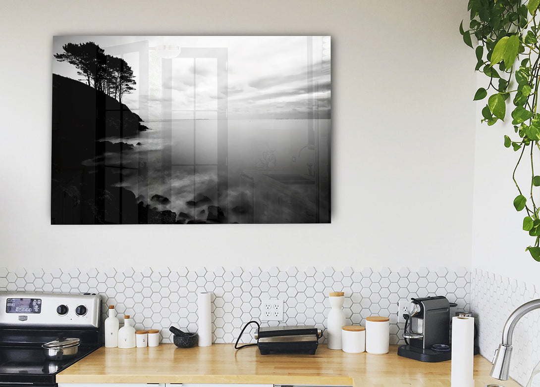Tree Top Ocean Calm S~w-Acryldruck, UV-gedruckt auf 5 mm dickes Acrylglas. Wird mit allem geliefert, was Sie zum Aufhängen an die Wand brauchen.
