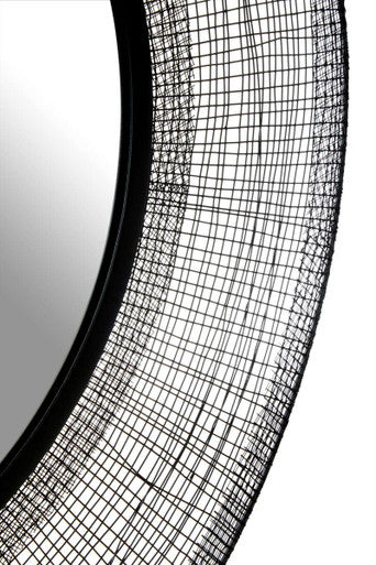 Frame of the Trento circular wall mirror is an intricately woven mesh of black finish wires in a crosshatch pattern that offers dimension and a geometrical look to it. The textured frame is paired with a sleek black rim that encircles the round reflective mirror in the centre. This black wall mirror is ideal for contemporary and modern living room, hallways, and bedroom.