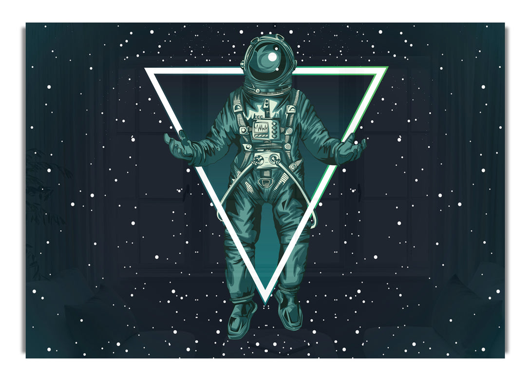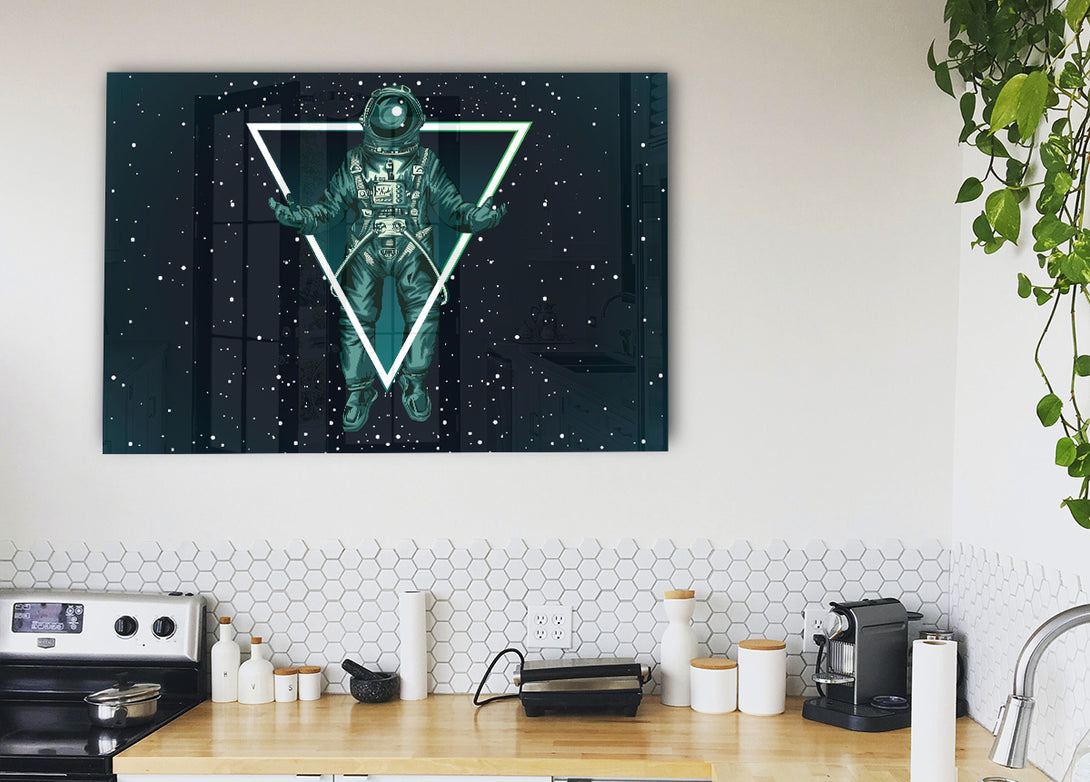 Triangle Space Man-Acryldruck, UV-gedruckt auf 5 mm dickes Acrylglas. Wird mit allem geliefert, was Sie zum Aufhängen an die Wand brauchen.