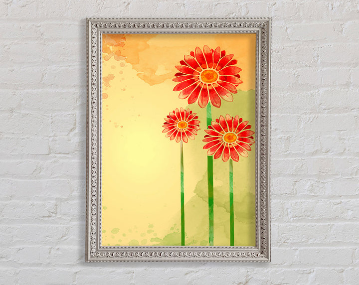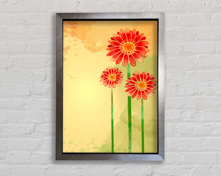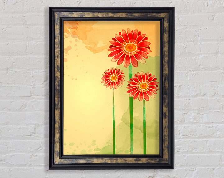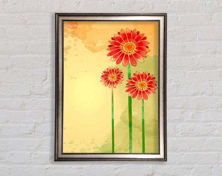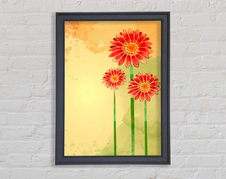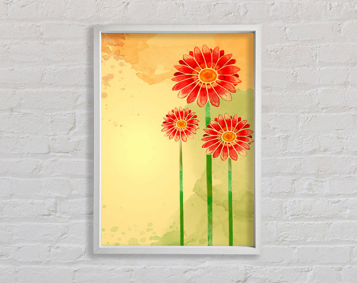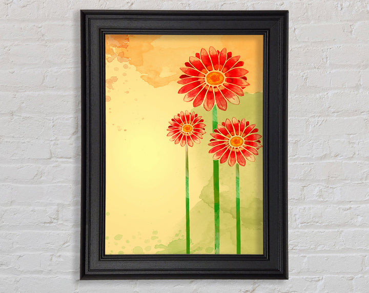 Gerahmter Druck „Trio Of Daisies“, erhältlich in mehreren Rahmenfarben. Fertig zum Aufhängen aus der Schachtel und handgefertigt im Vereinigten Königreich.