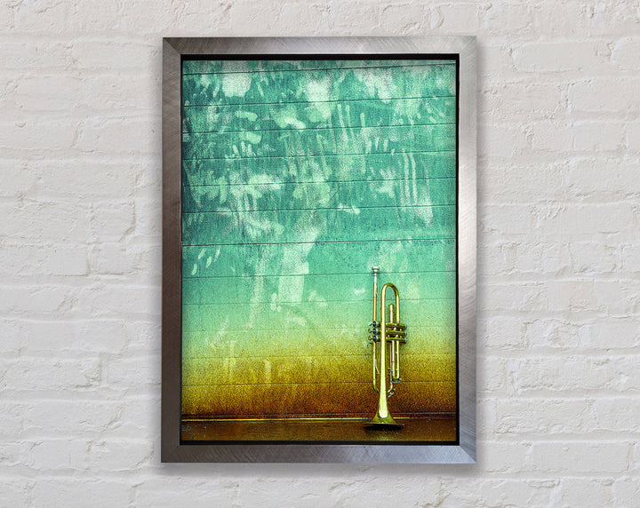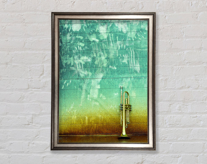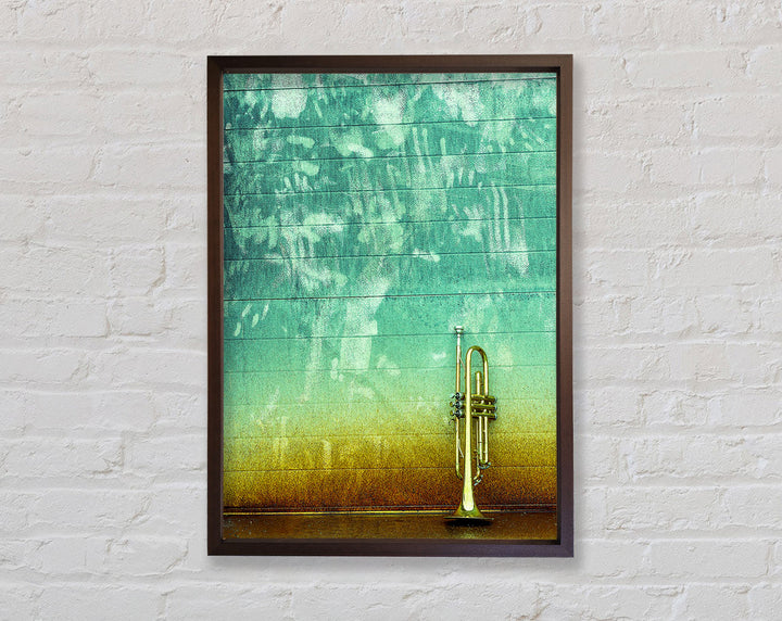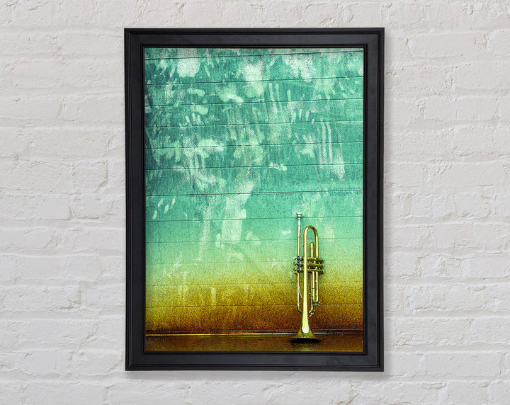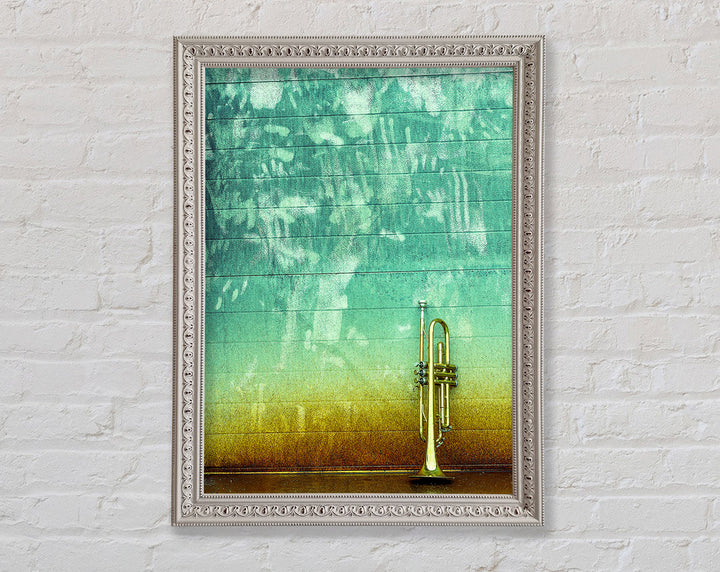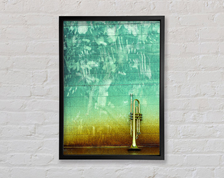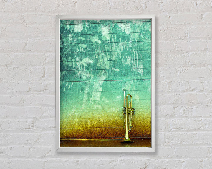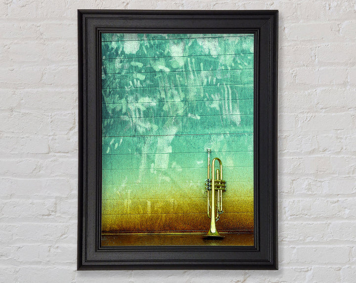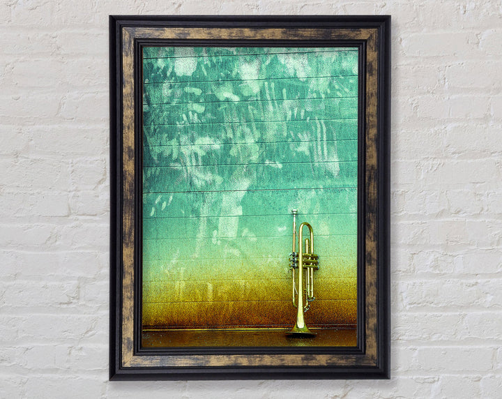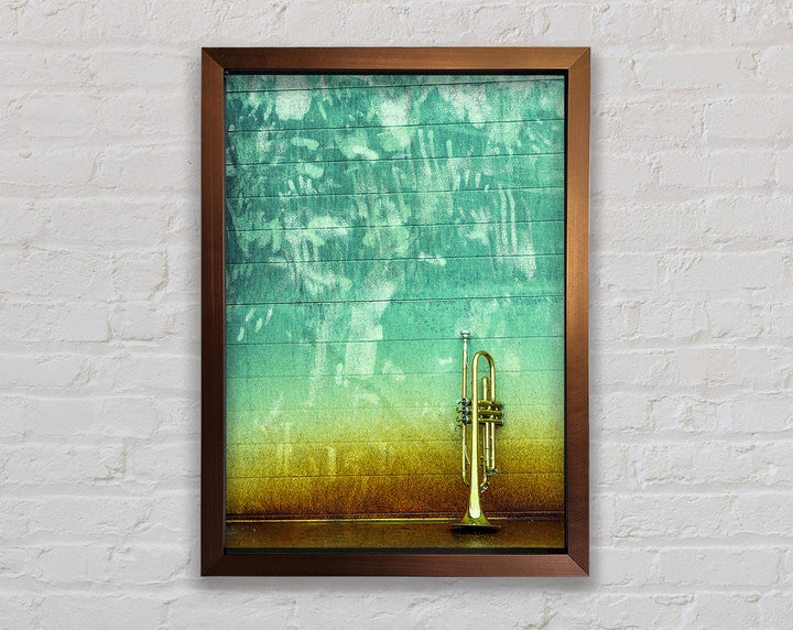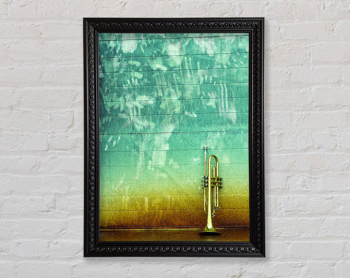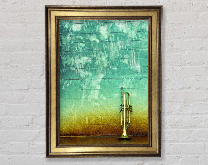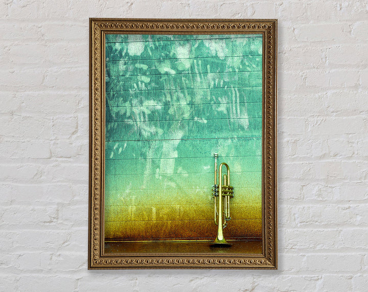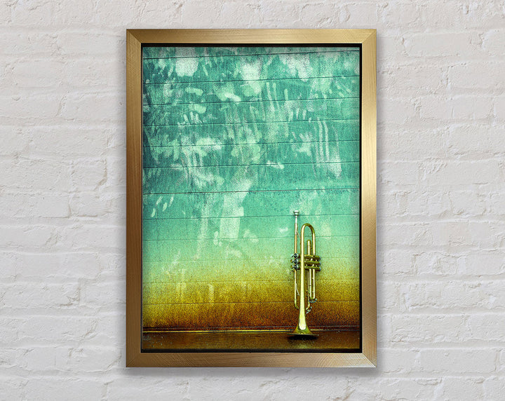 Gerahmter Druck „Trumpet Gold“, erhältlich in mehreren Rahmenfarben. Fertig zum Aufhängen aus der Schachtel und handgefertigt im Vereinigten Königreich.